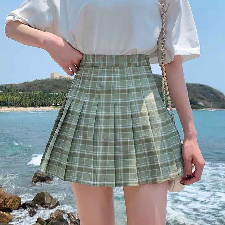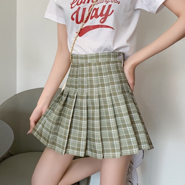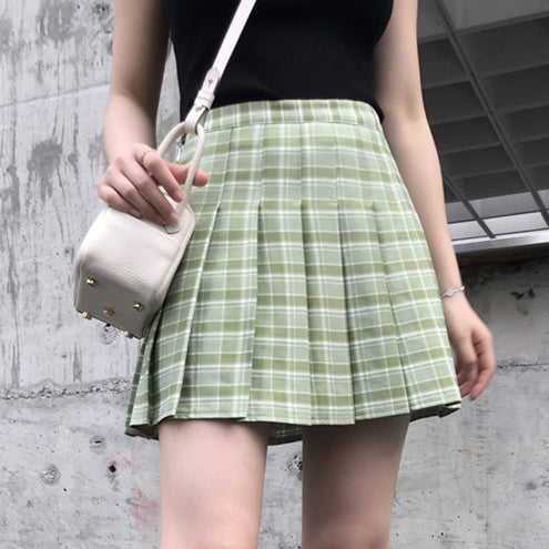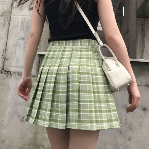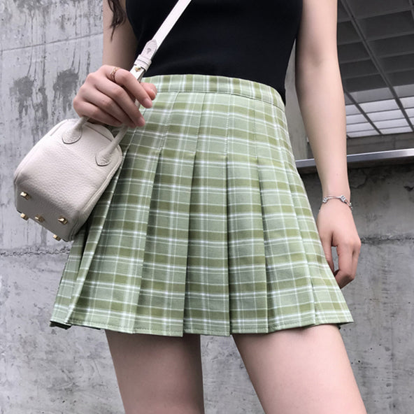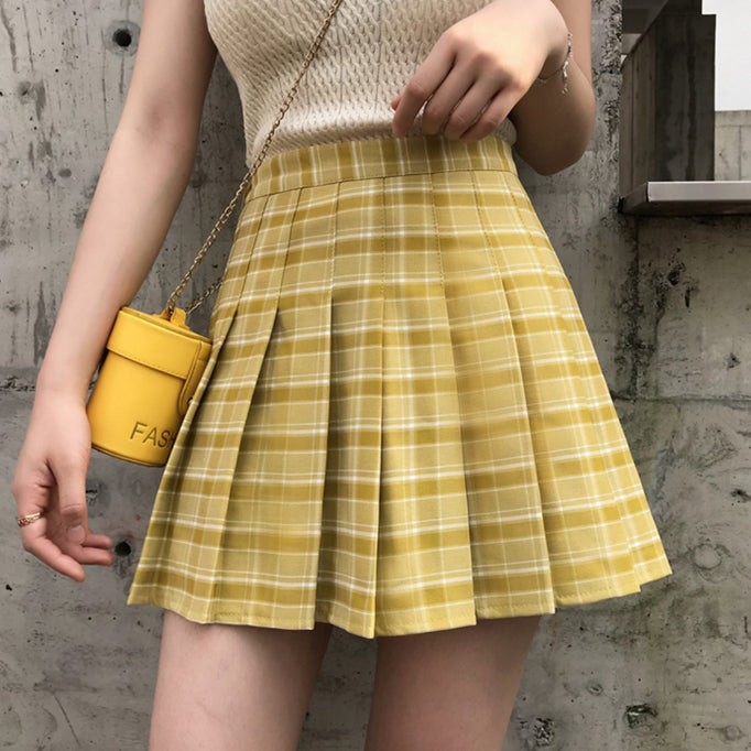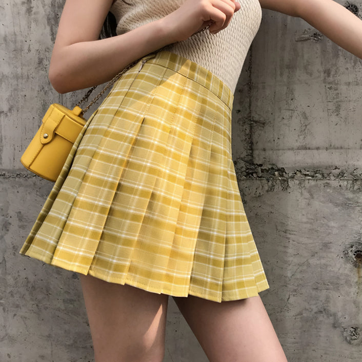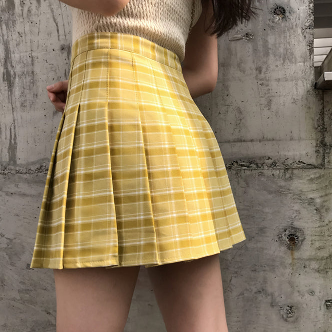 Zitronengrüner, plissierter Tennisrock mit seitlichem Knopf- und Reißverschluss. Gefüttert mit Sicherheitsshorts.