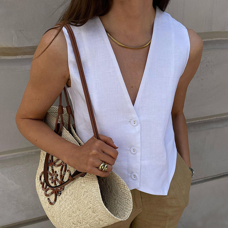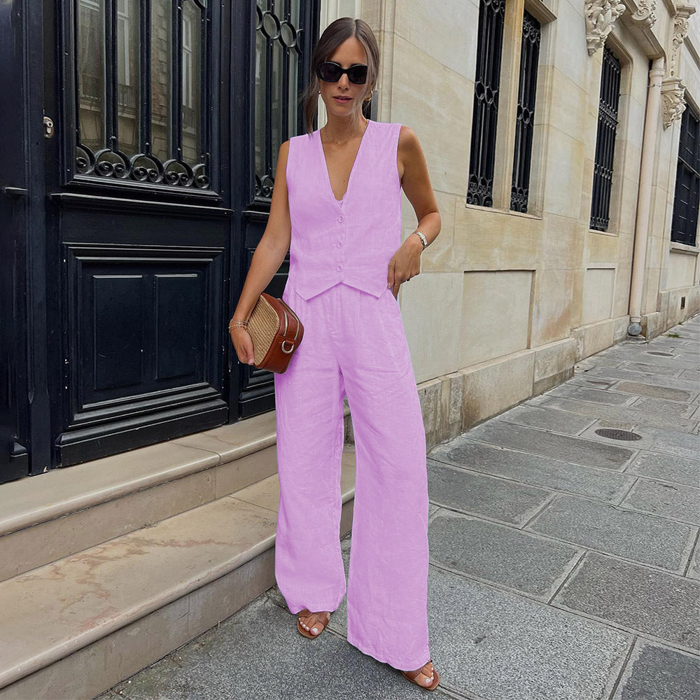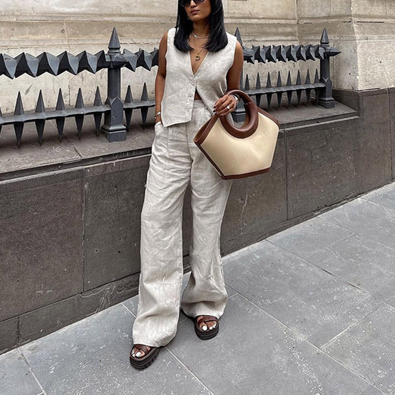 Style: Womens blazer sets, casual Linen Womens 2 Piece Suits Wedding Prom Waistcoat Custom Summer Linen Vest and wide leg Pants Trousers.