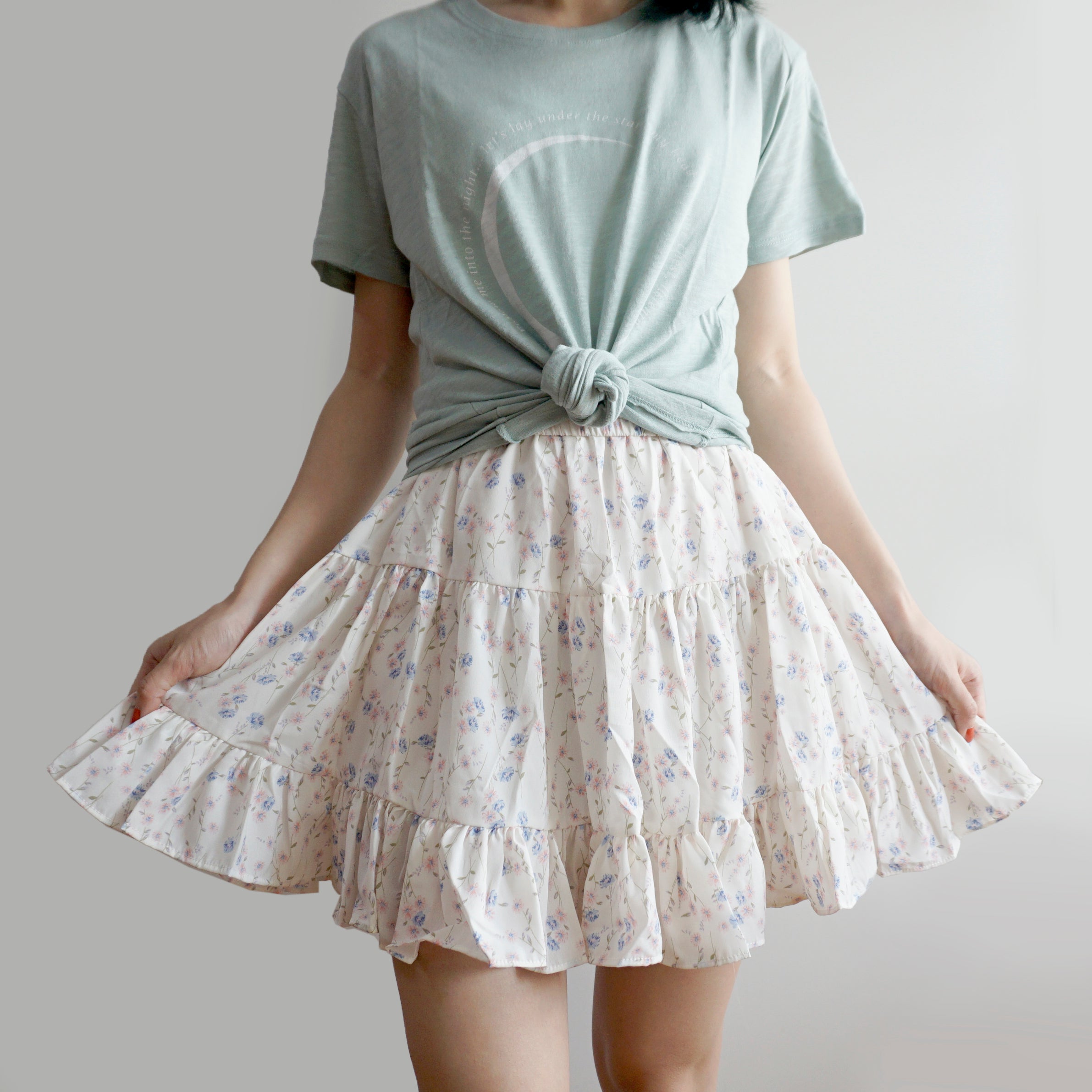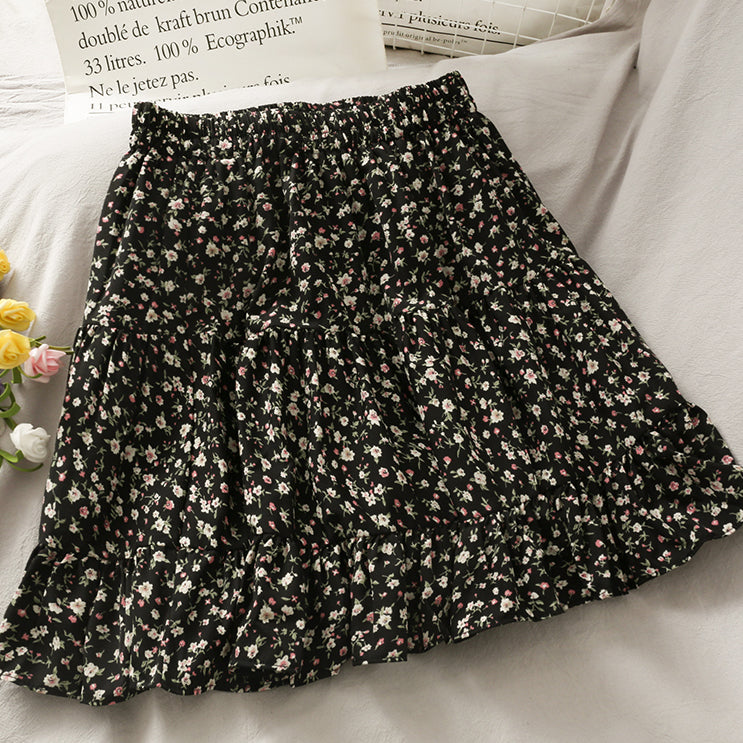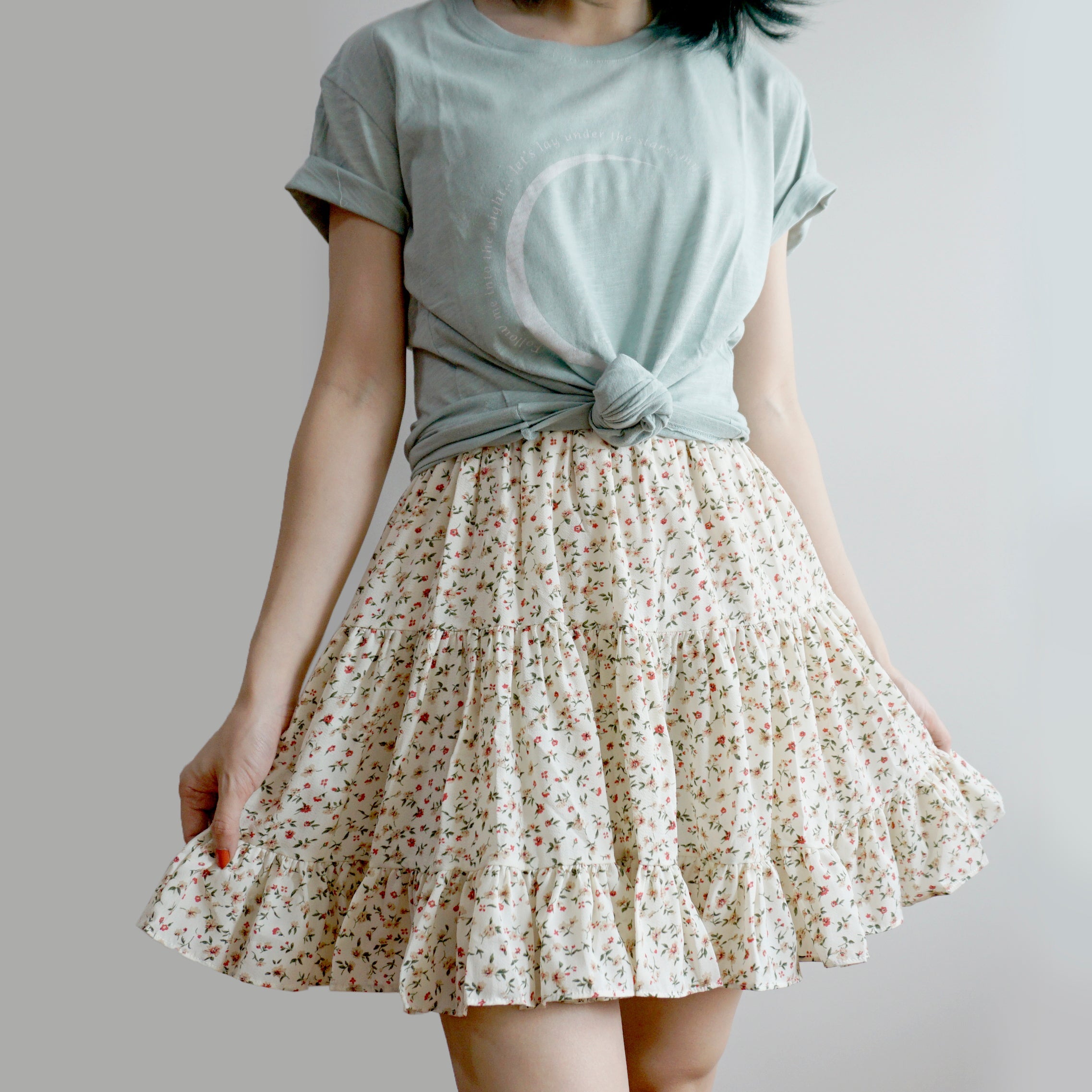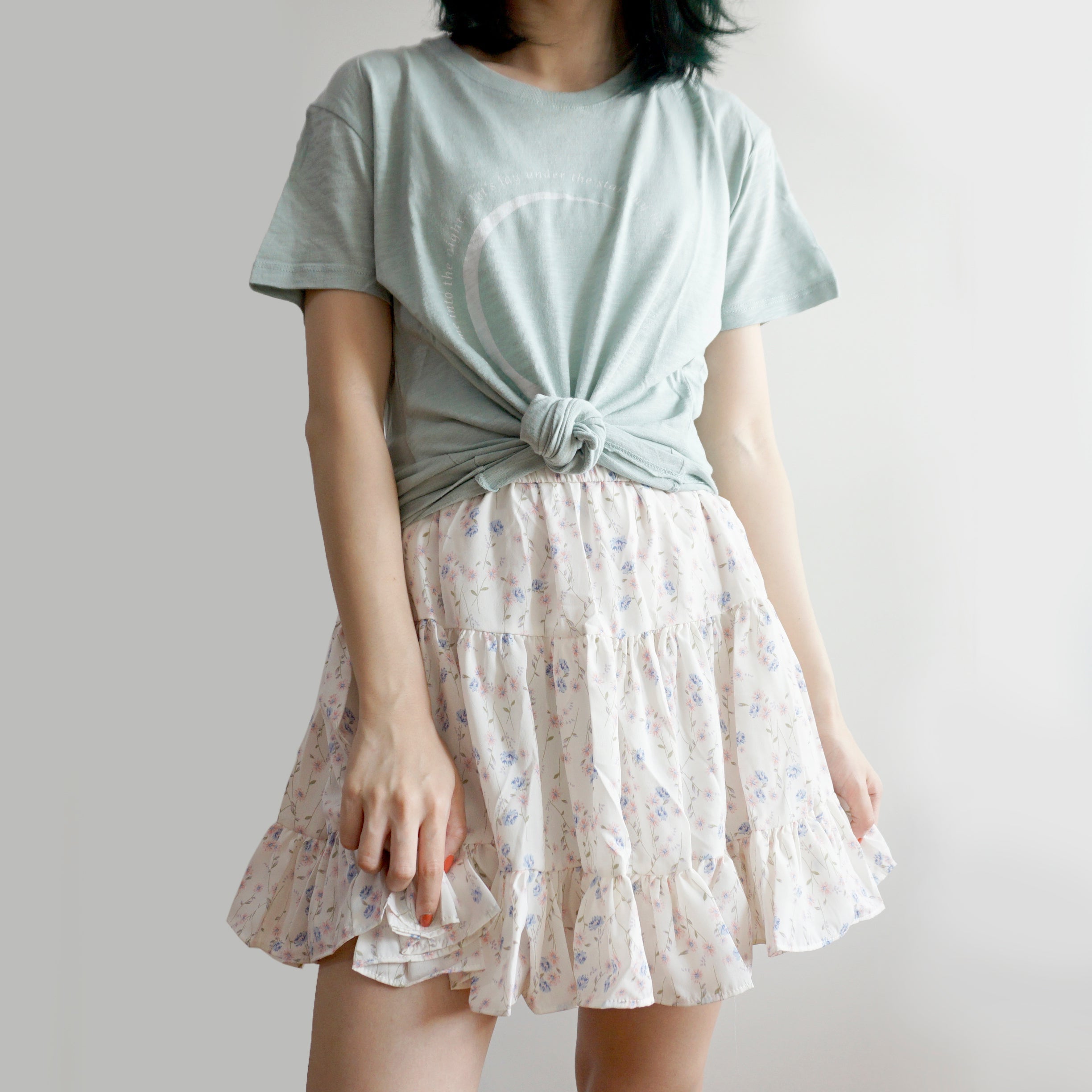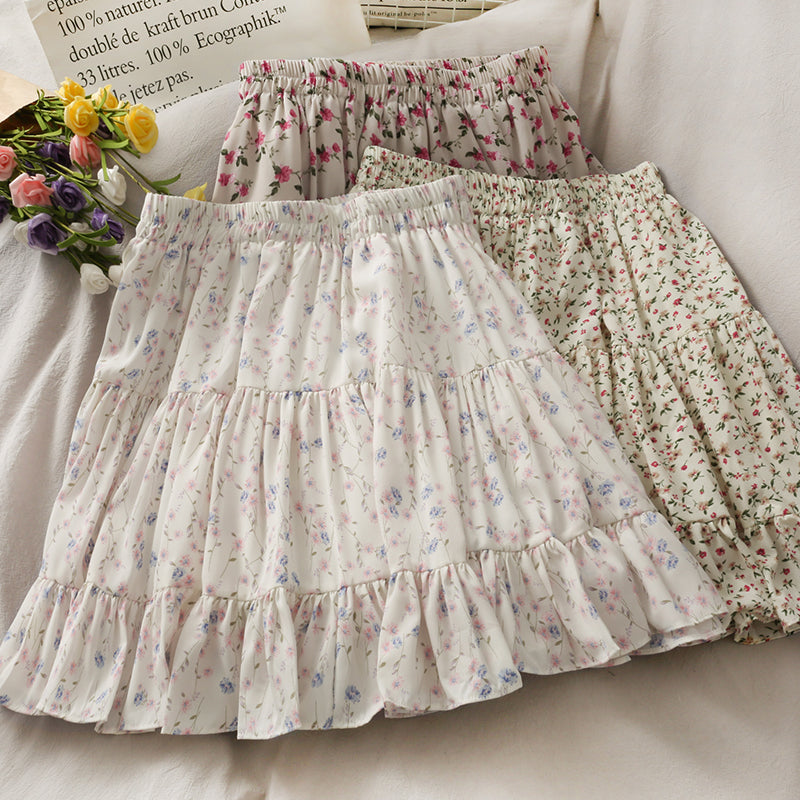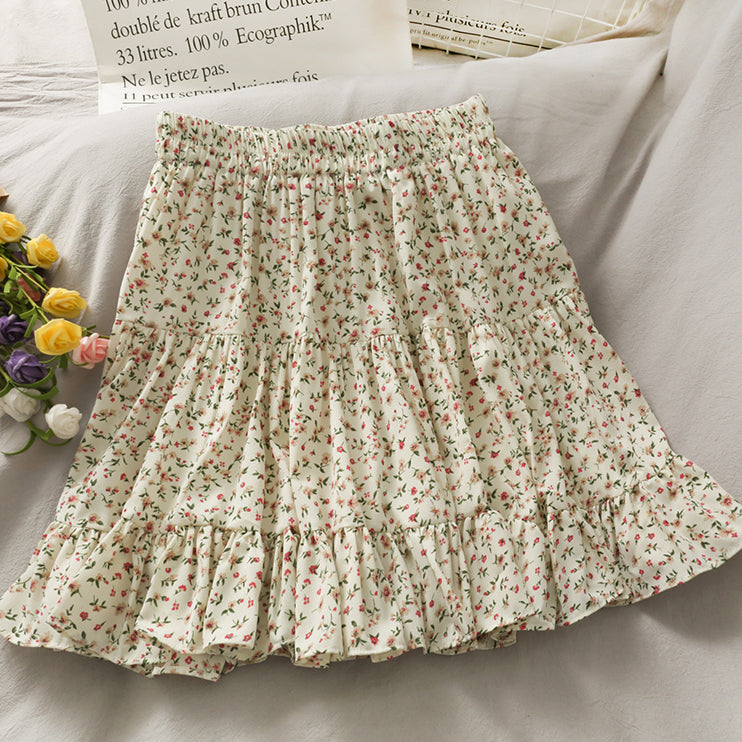 Fließender Chiffon-Minirock mit elastischem Bund und Stufen. Perfekt zum Kombinieren mit Hemden oder Pullovern. Lässt sich super wirbeln! Gefüttert mit Sicherheitsshorts.