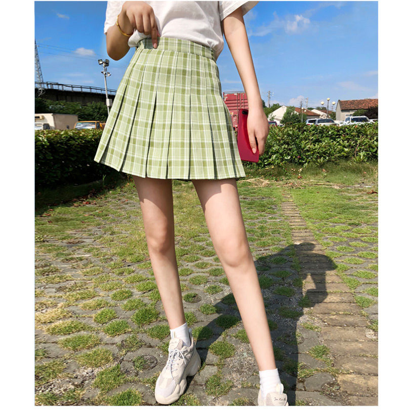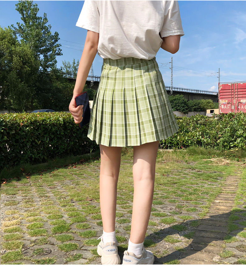 Grüner plissierter karierter koreanischer Rock