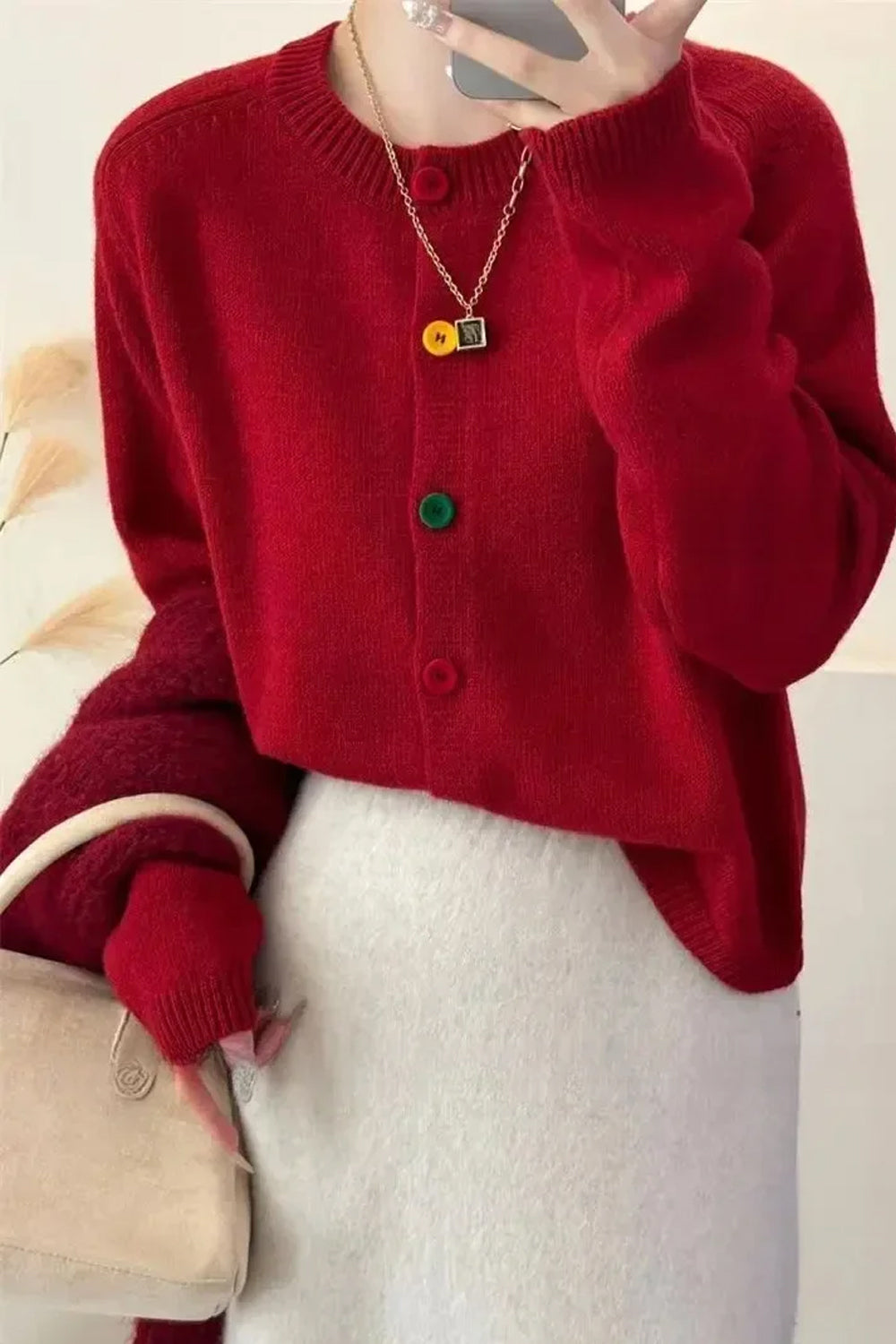 Long Sleeve Colorful Buton Cardigan Sweater