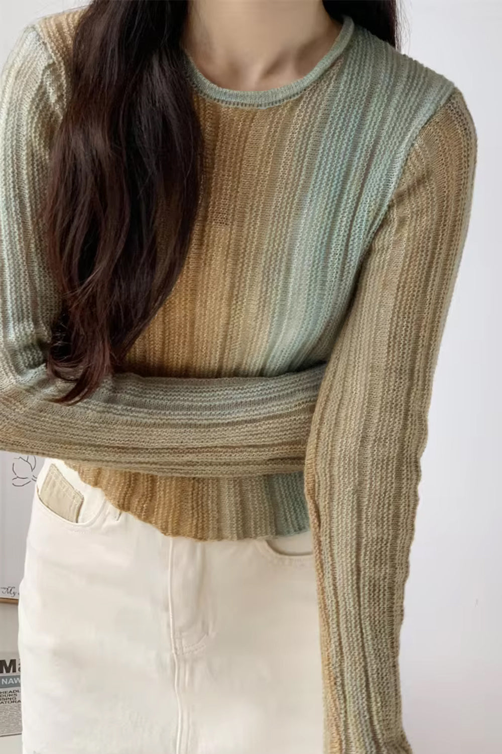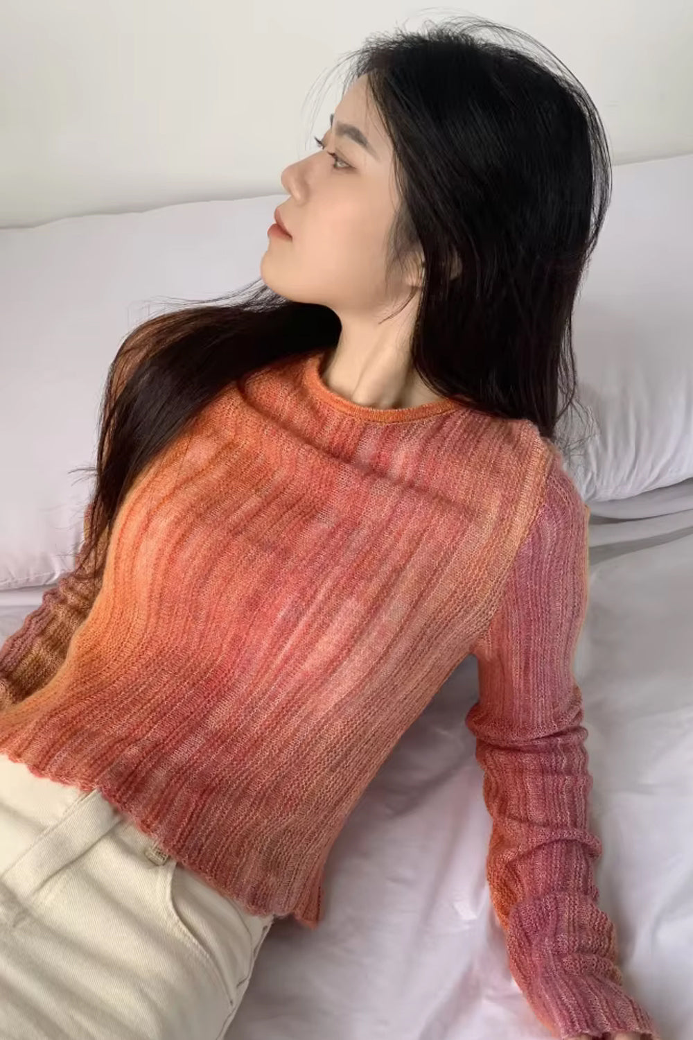 Buy Long Sleeve Gradient Colors O-Neck Slim Sweater from Omcne for your outfit of the day. This item is in stock and ready to order. World Wide Shipping Service. Check our Shop for more trendy fashion.