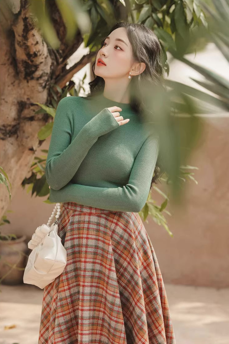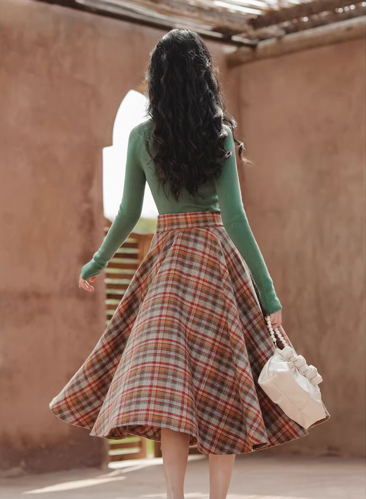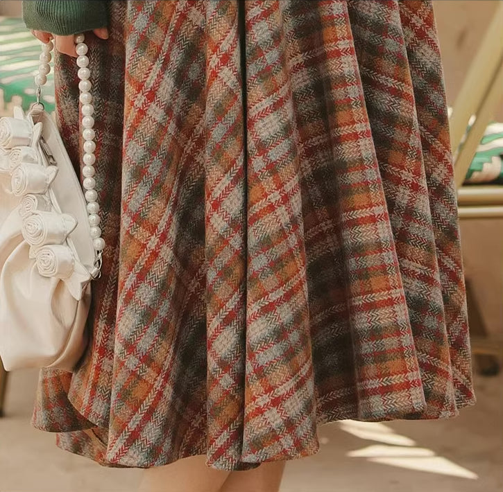Tanzen Sie in diesem Midi-Swingrock mit großem Kreissaum und Farben, die an herbstliche Blätter erinnern. Mit Knopf und verdecktem Reißverschluss an der Seite. Gefüttert.