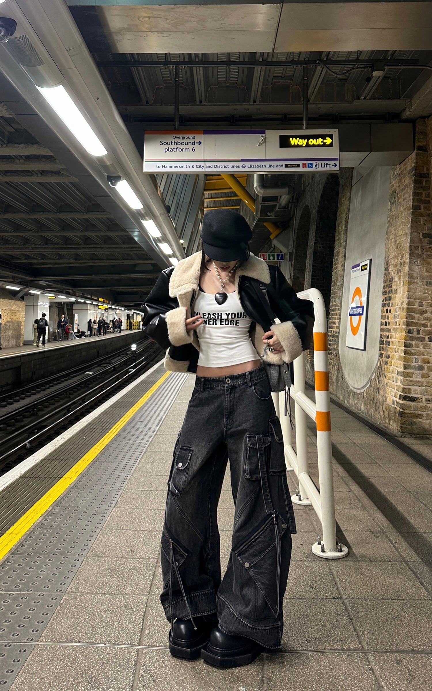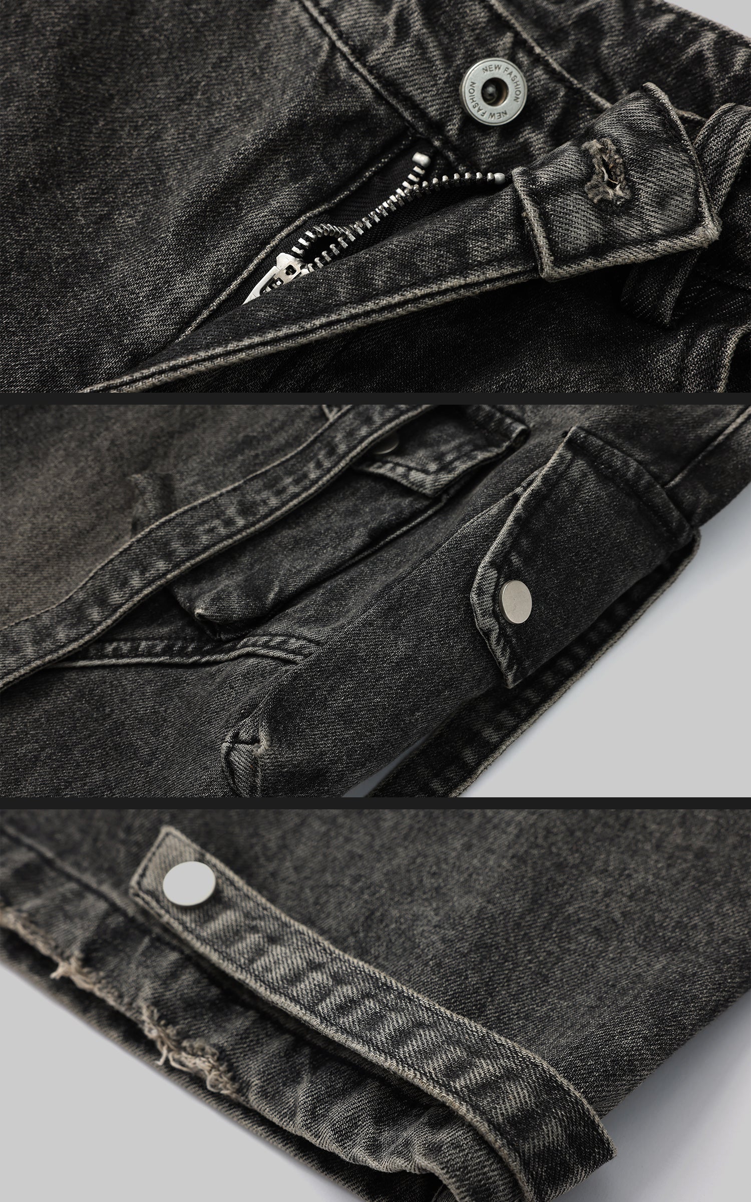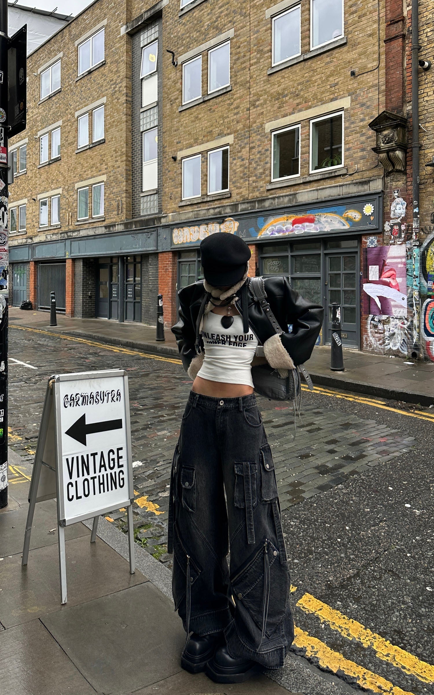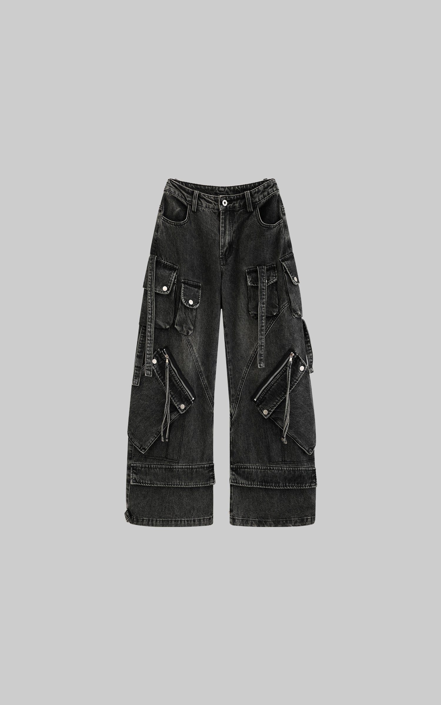 Crafted for the bold. these high-rise cargo jeans redefine streetwear with a fusion of utility and style. Featuring oversized side pockets and a wide-leg silhouette. they offer maximum functionality without sacrificing edge. The contrast stitching and distressed details amplify a rugged aesthetic. while the adjustable straps allow for a custom fit. Pair with a cropped top or an oversized jacket for a look that commands attention on the street.