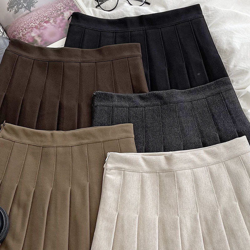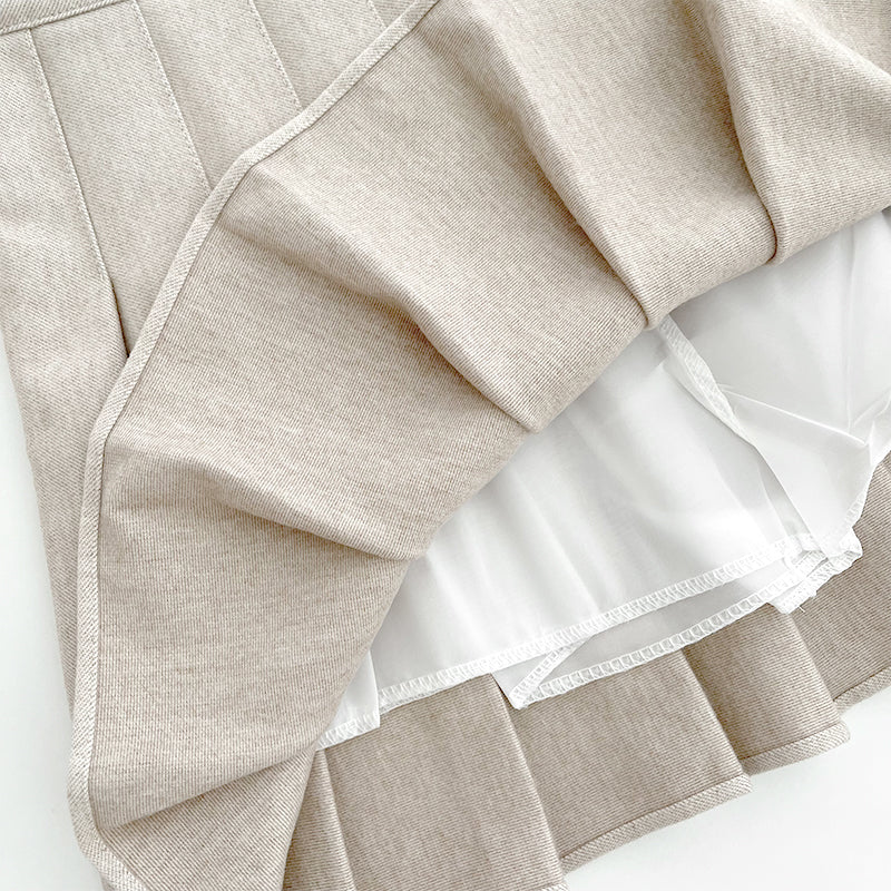 Klassischer Tennisrock in neutralen Farbtönen mit permanenten Falten, verdecktem seitlichen Reißverschluss und gefüttert mit Sicherheitsshorts.