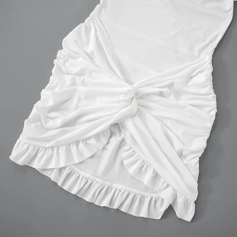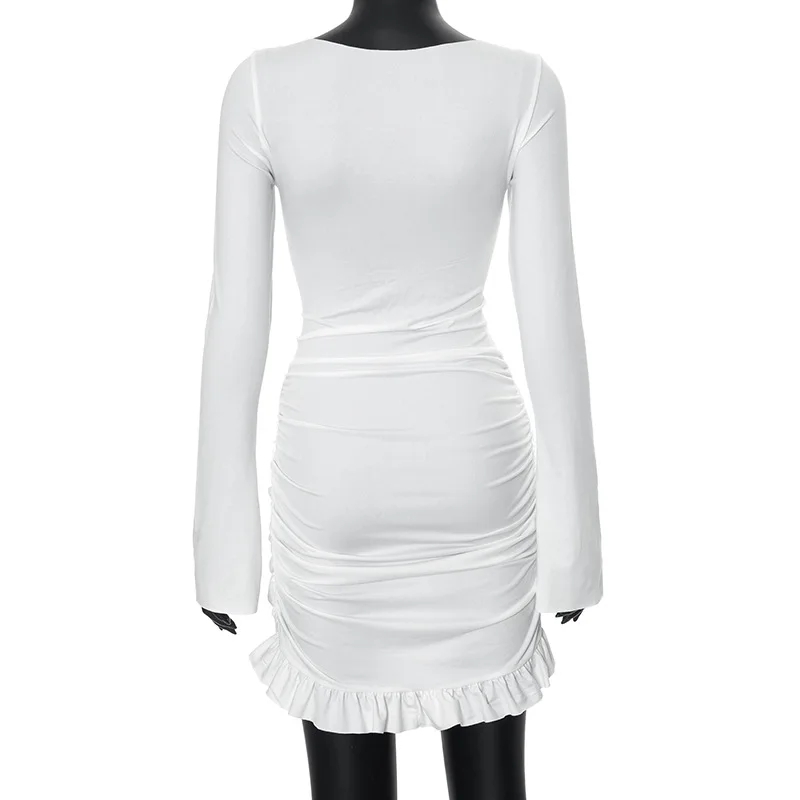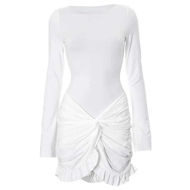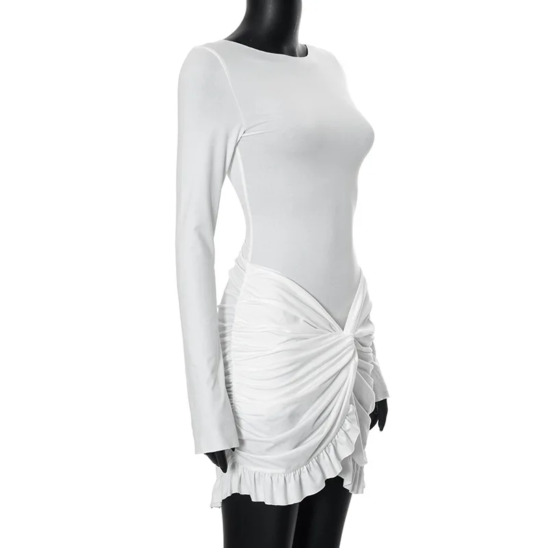 Ruffled Twist Skinny MIni Dress Women's Long Sleeve Patchwork High Waist Sexy Fashion Party Dress Female Y2k Bodycon Dress