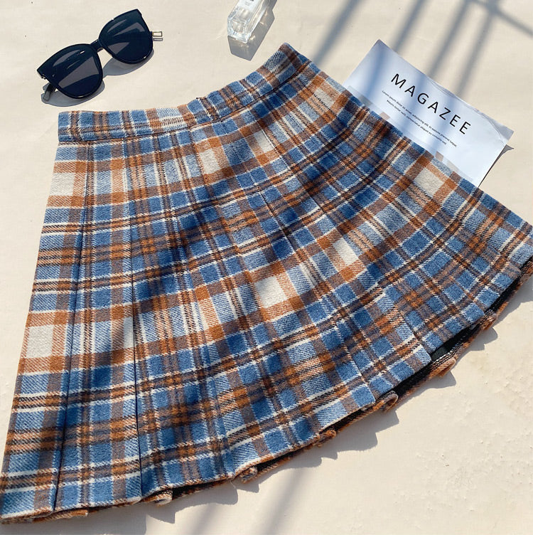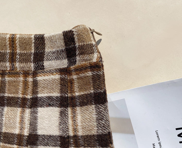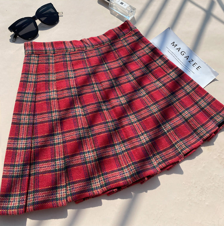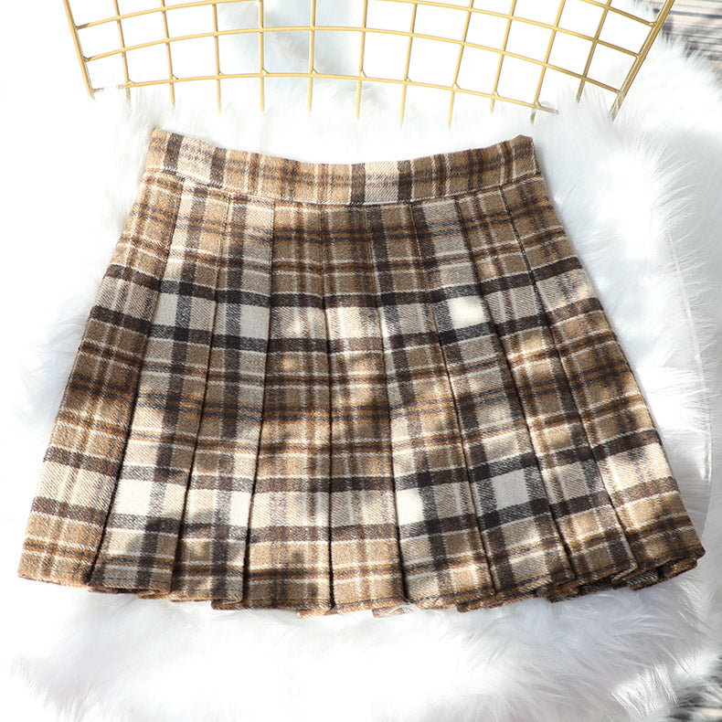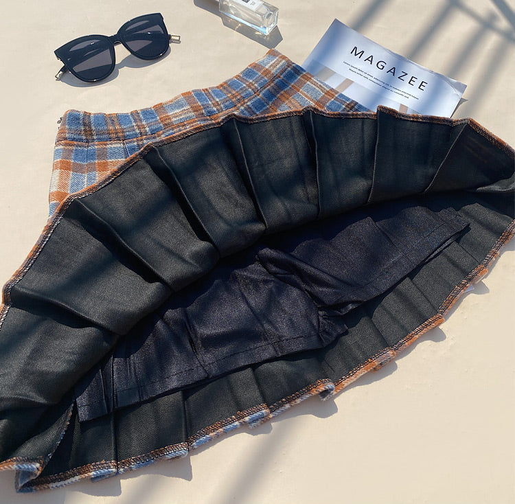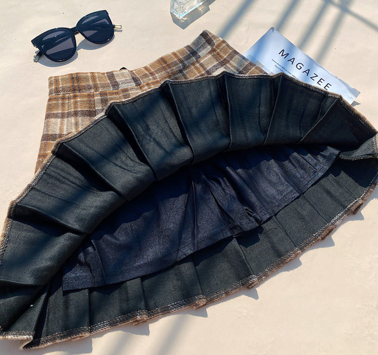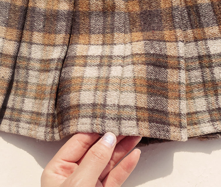 Plissierter, karierter Tennisrock mit Wollstruktur. Verdeckter seitlicher Reißverschluss. Gefüttert mit Sicherheitsshorts.