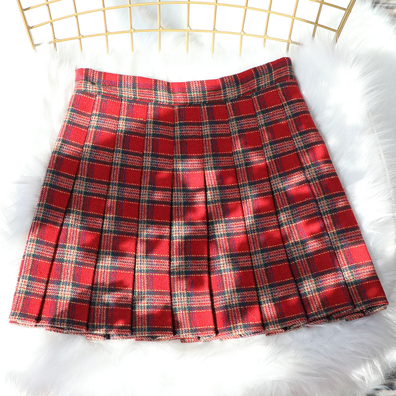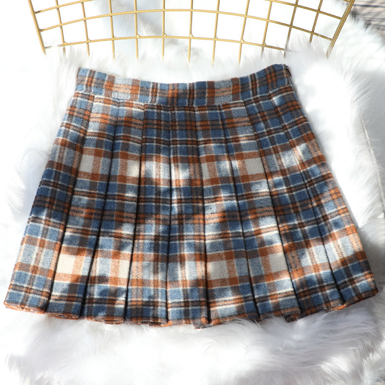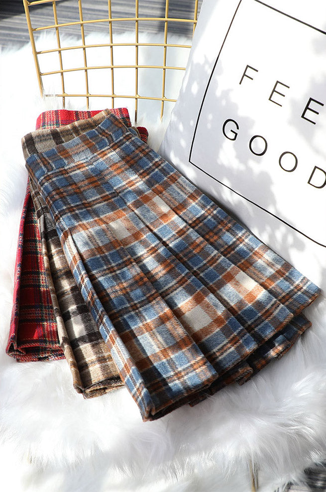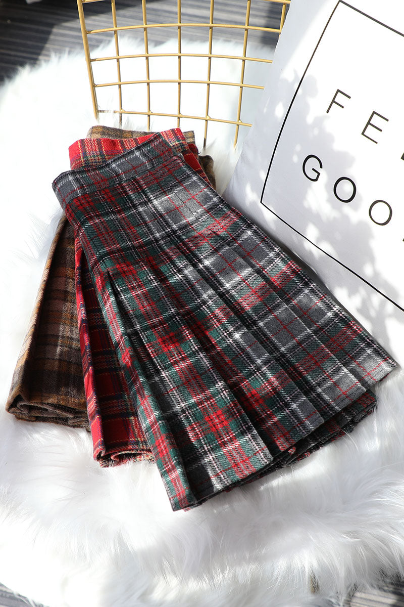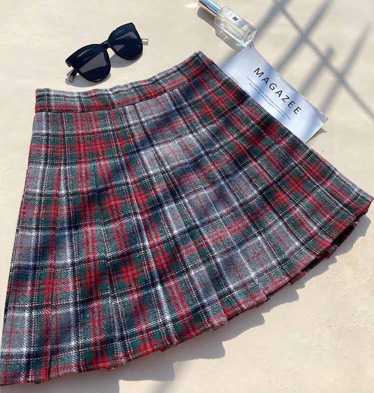 Plissierter, karierter Tennisrock mit Wollstruktur. Verdeckter seitlicher Reißverschluss. Gefüttert mit Sicherheitsshorts.