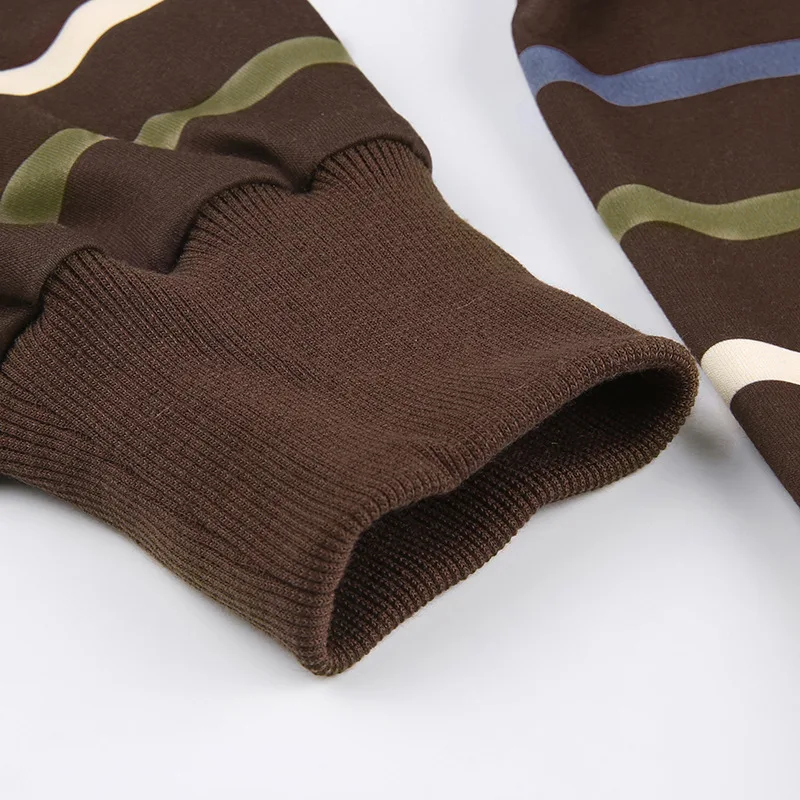 Autumn New Simple Color Contrast Striped Y2k Zipper Drawstring Hoodie Coat European And American Trend Fashion Women's Wear