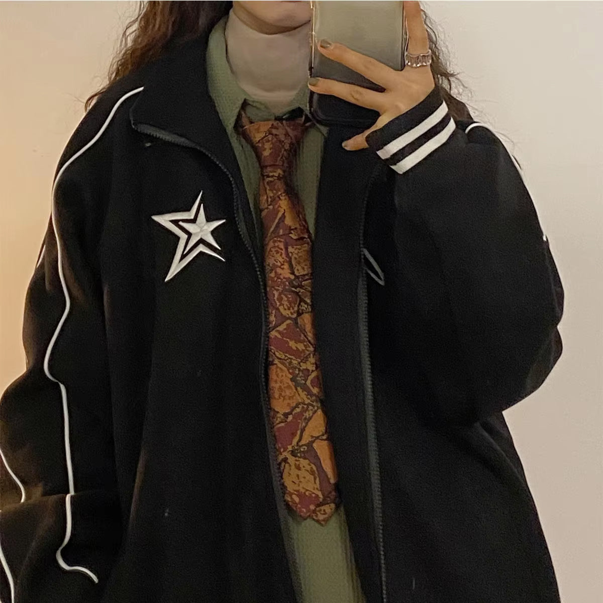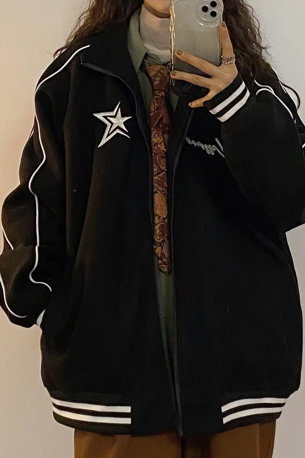 Buy Star Letter Embroidery Stand Neck Retro Jacket from Omcne for your outfit of the day. This item is in stock and ready to order. World Wide Shipping Service. Check our Shop for more trendy fashion.