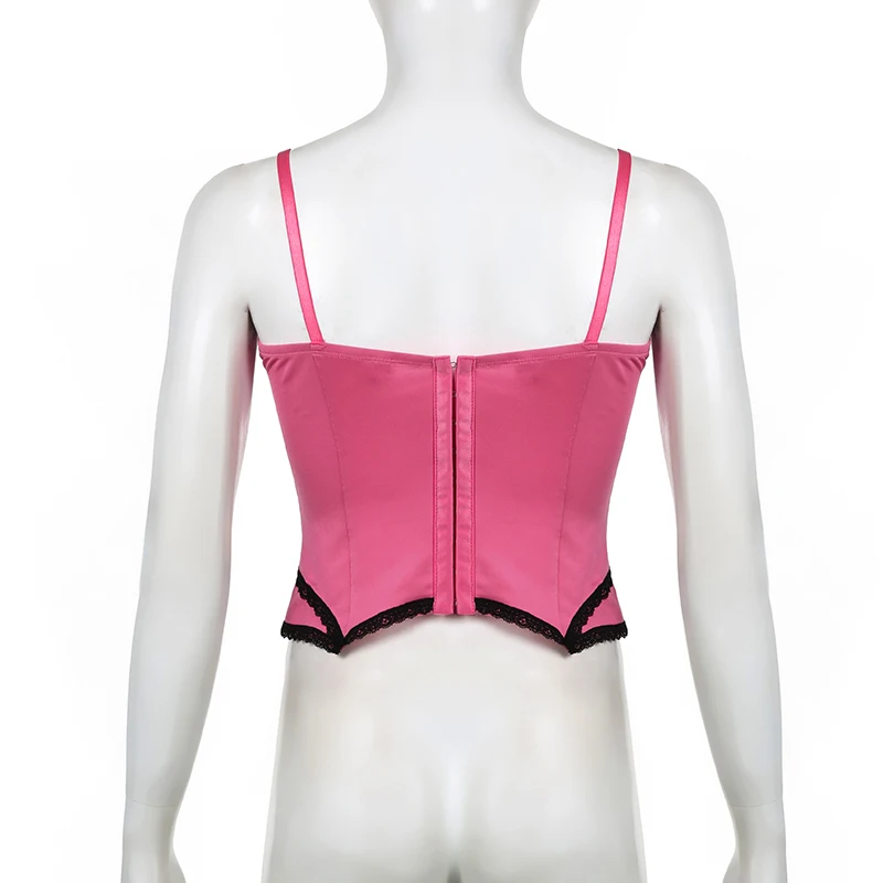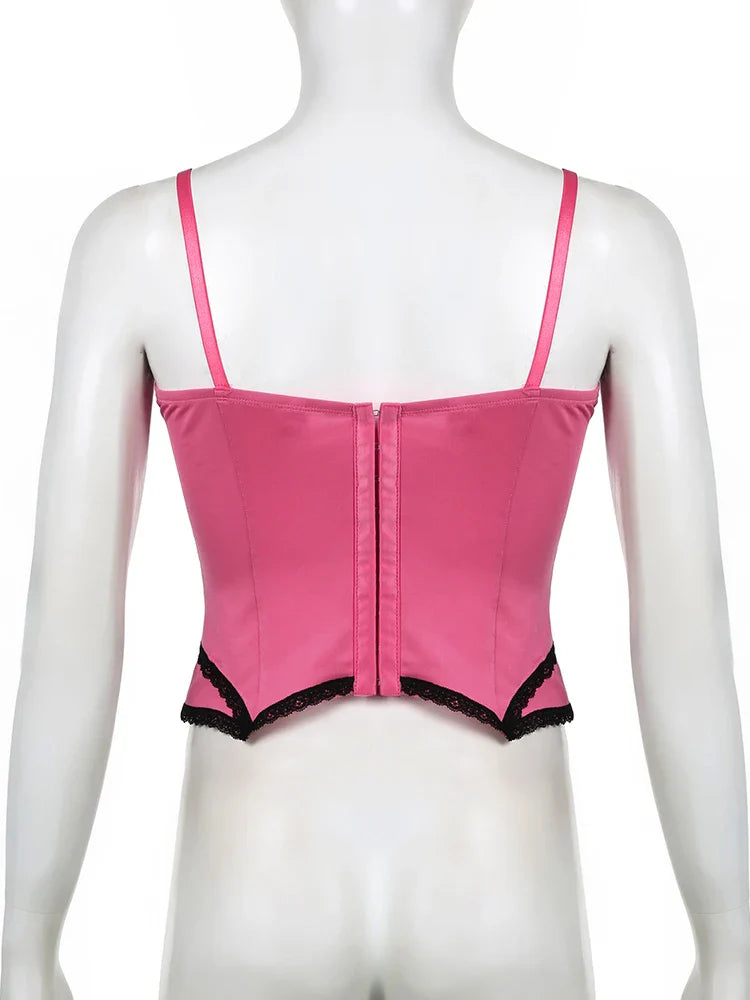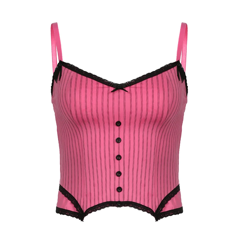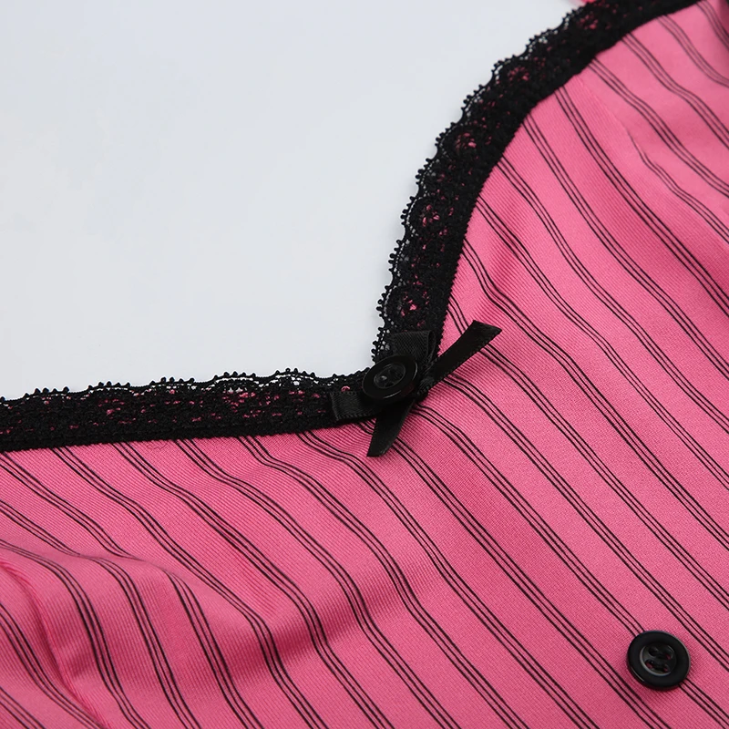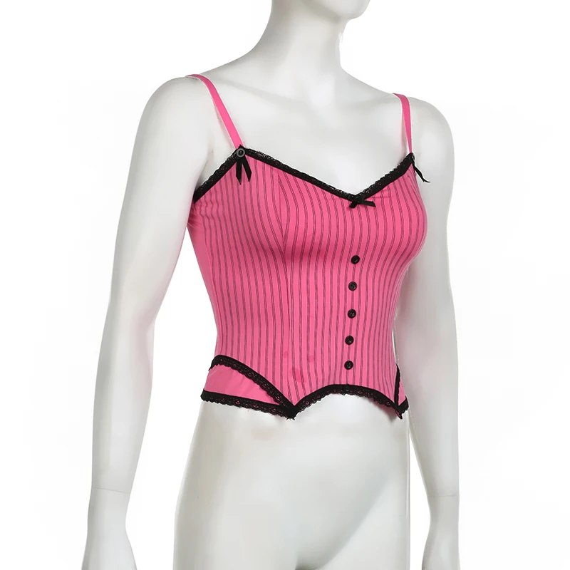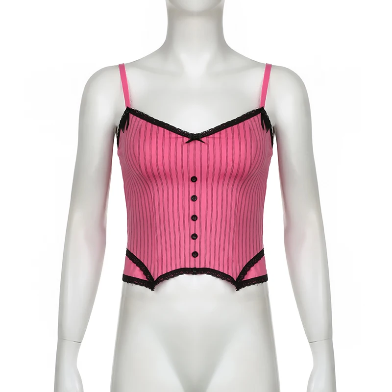 Sweet Bow Stitched Pink Crop Top Vintage y2k Patchwork Sleeveless Striped Print Tees Casual Basic Camisole Kawaii