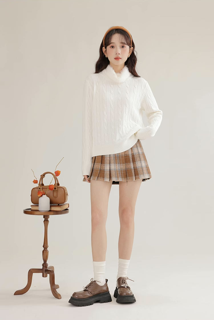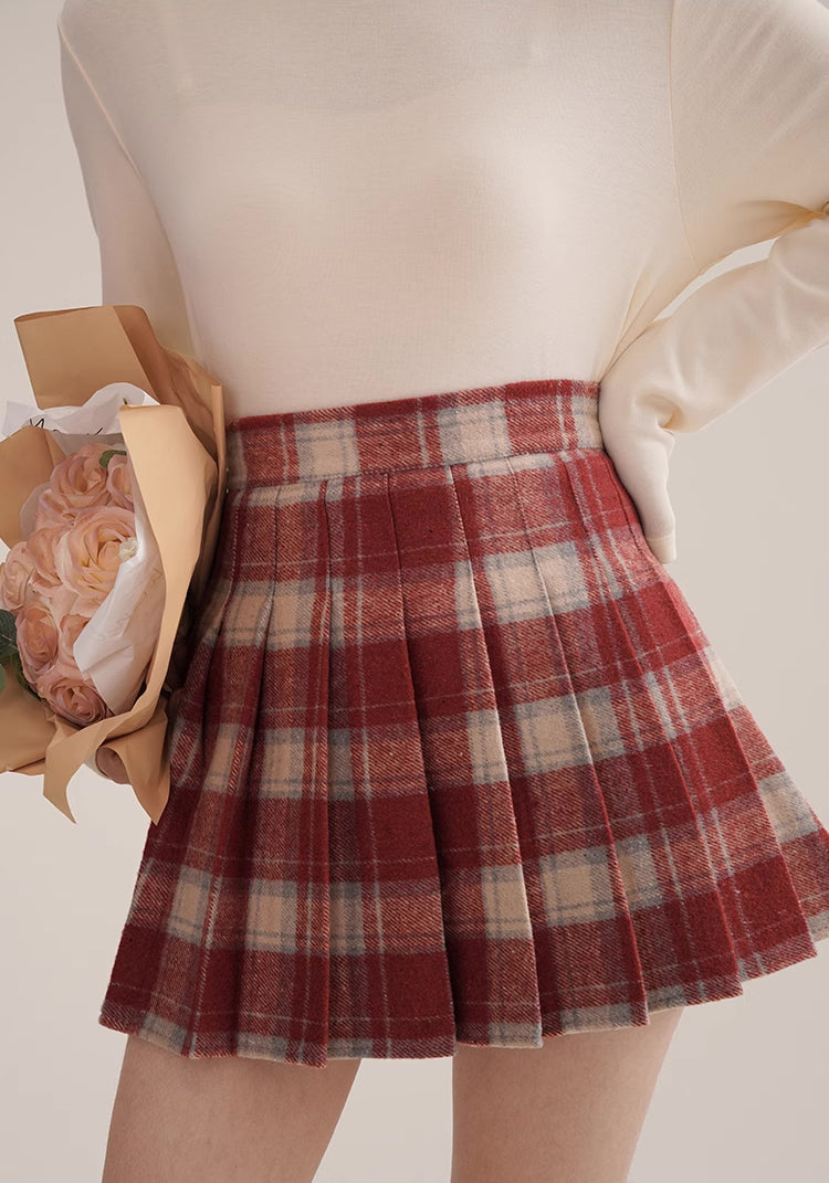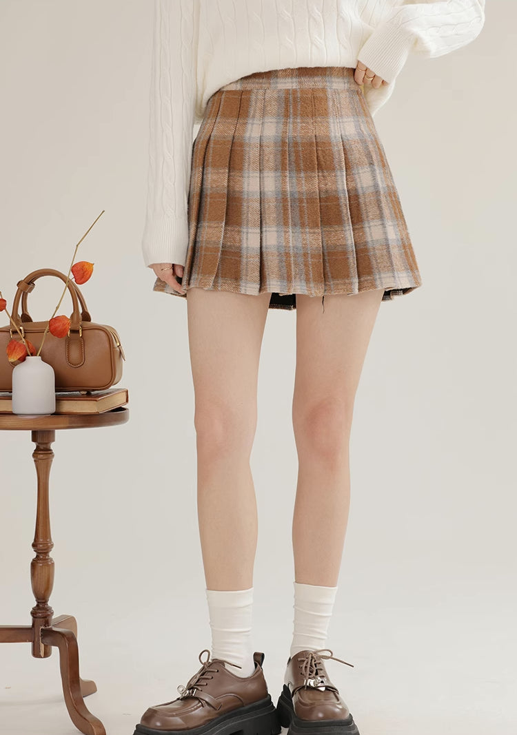 Plissierter Mini-Tennisrock in unserem gerösteten Karomuster. Verdeckter seitlicher Reißverschluss. Gefüttert mit Sicherheitsshorts.