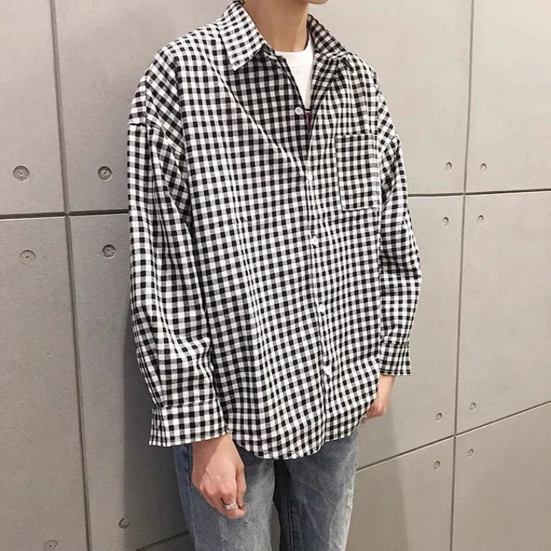 Spring Autumn New Fashion Turn-down Collar Long Sleeve Plaid Blouse Men's Clothing Simplicity Pocket Button All-match Y2K Shirts