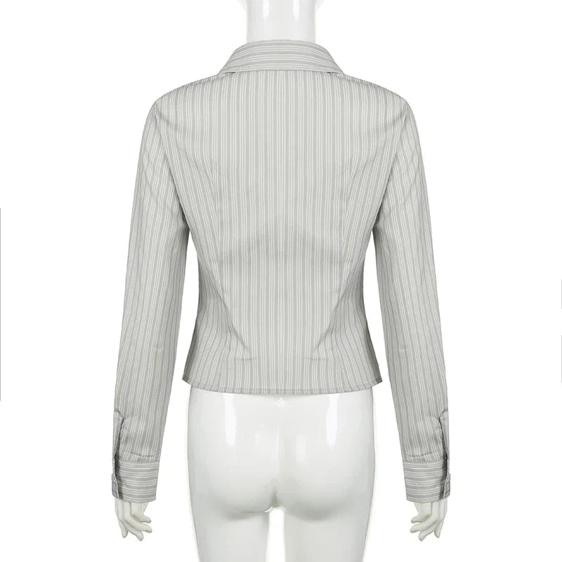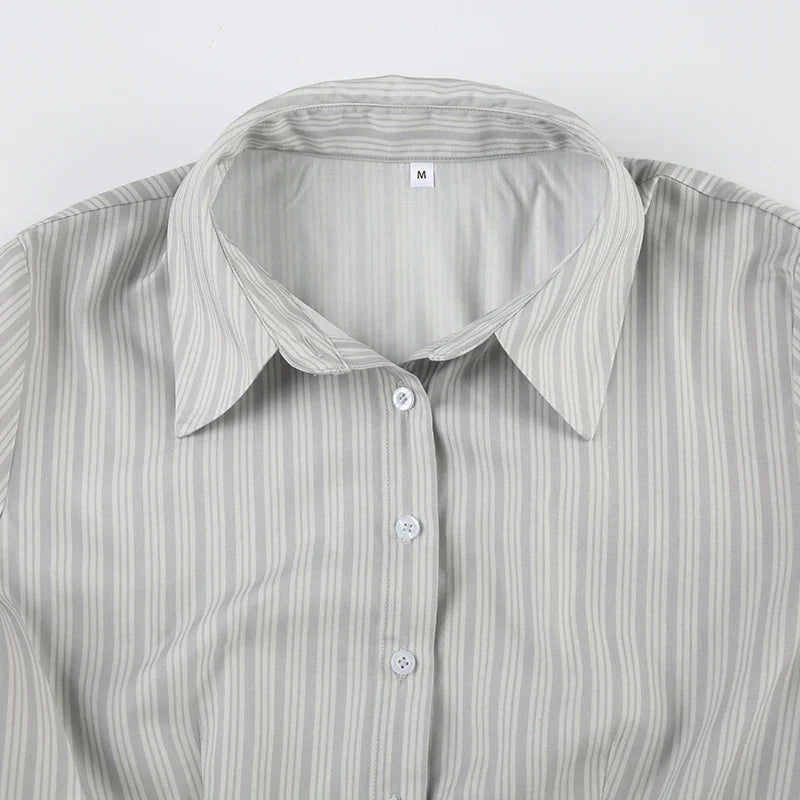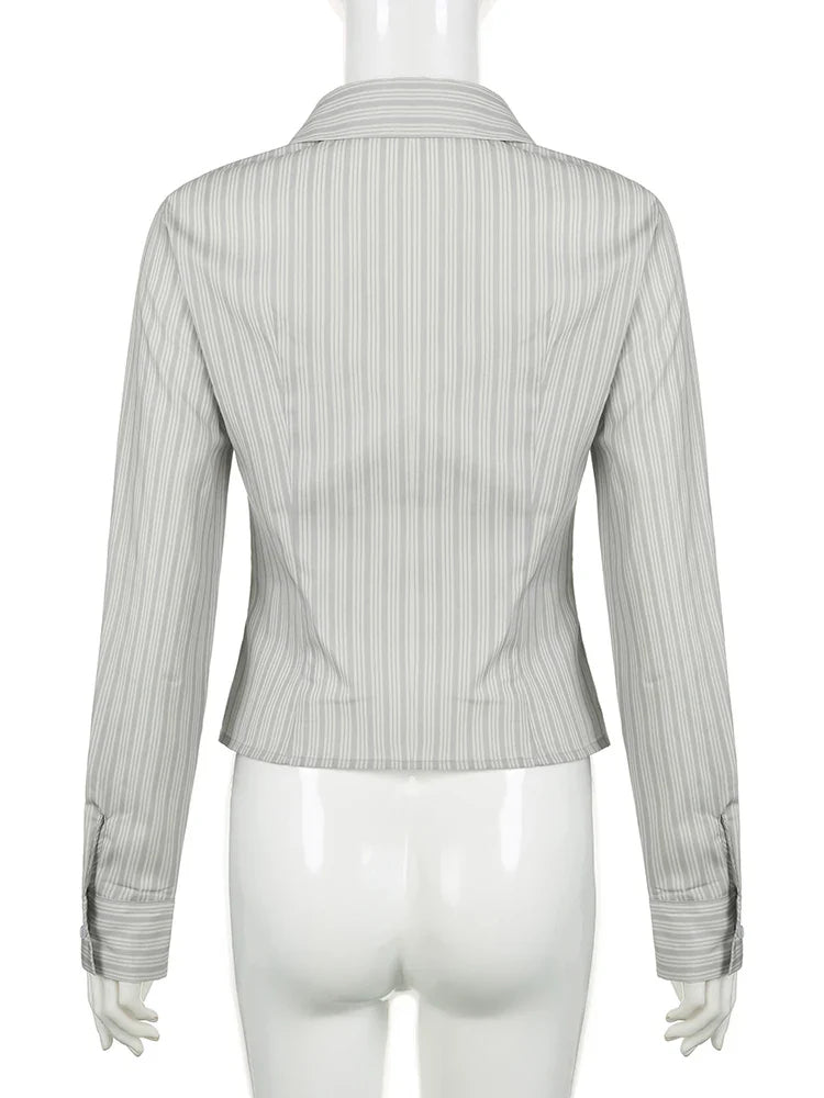 Fashion Striped Blouses Office Ladies Y2K Aesthetic Vintage Buttons Up Lapel Collar Shirts Women Korean Casual Tops