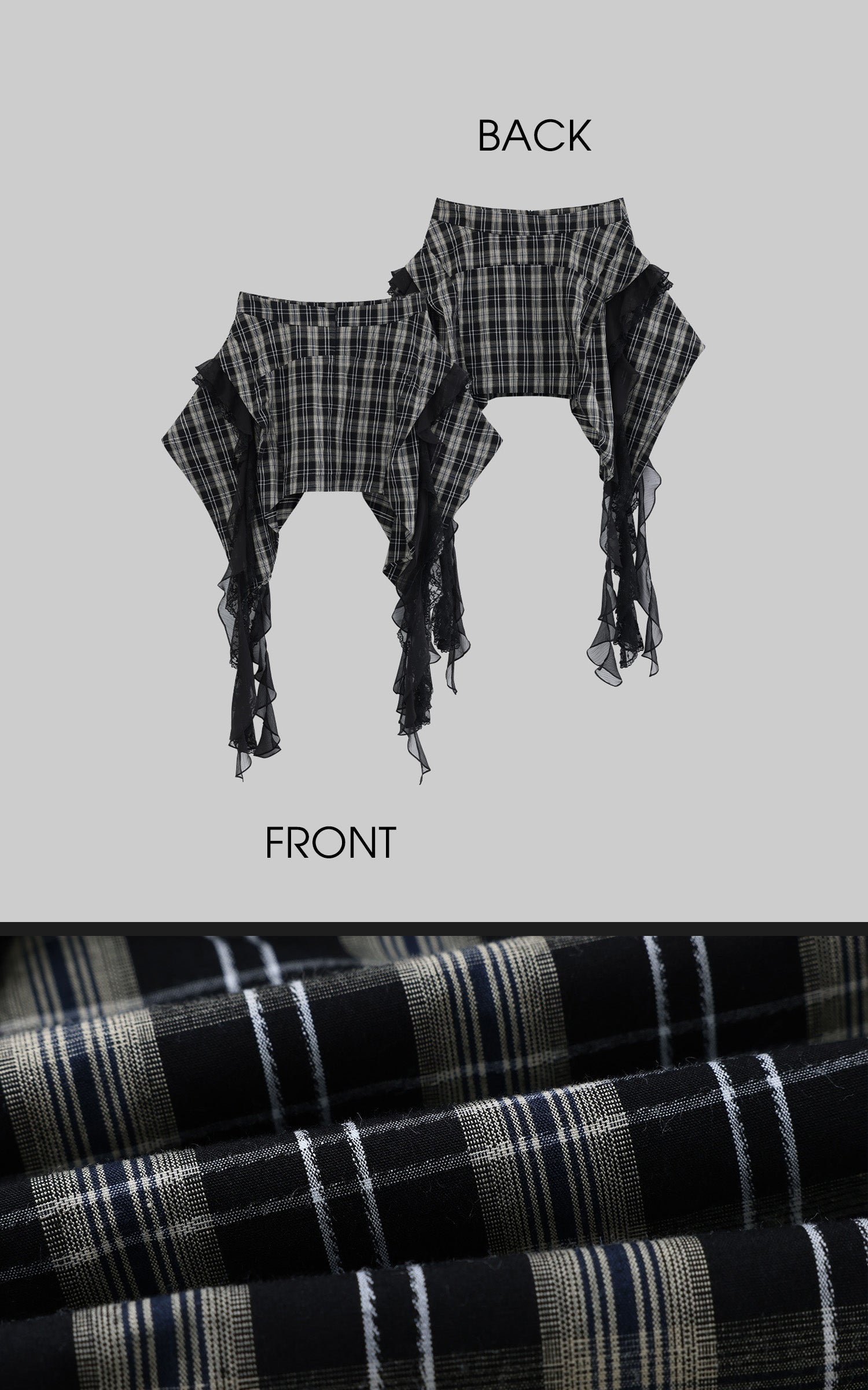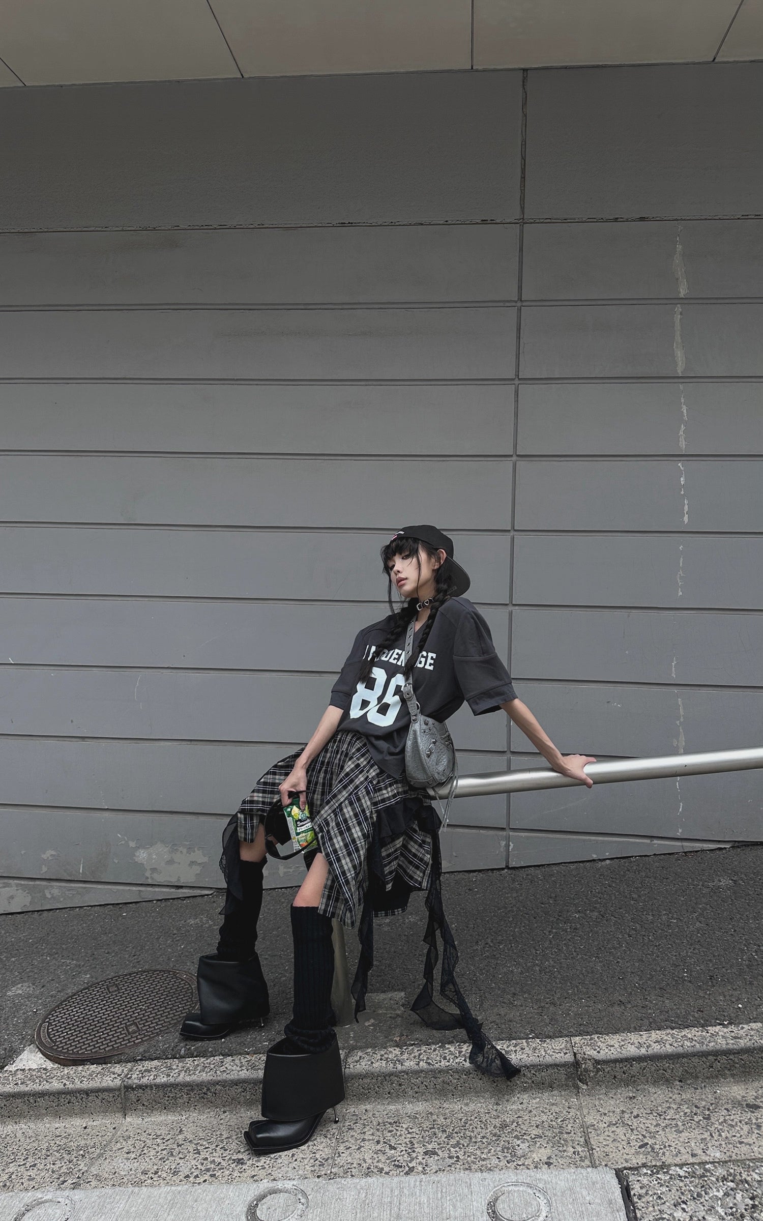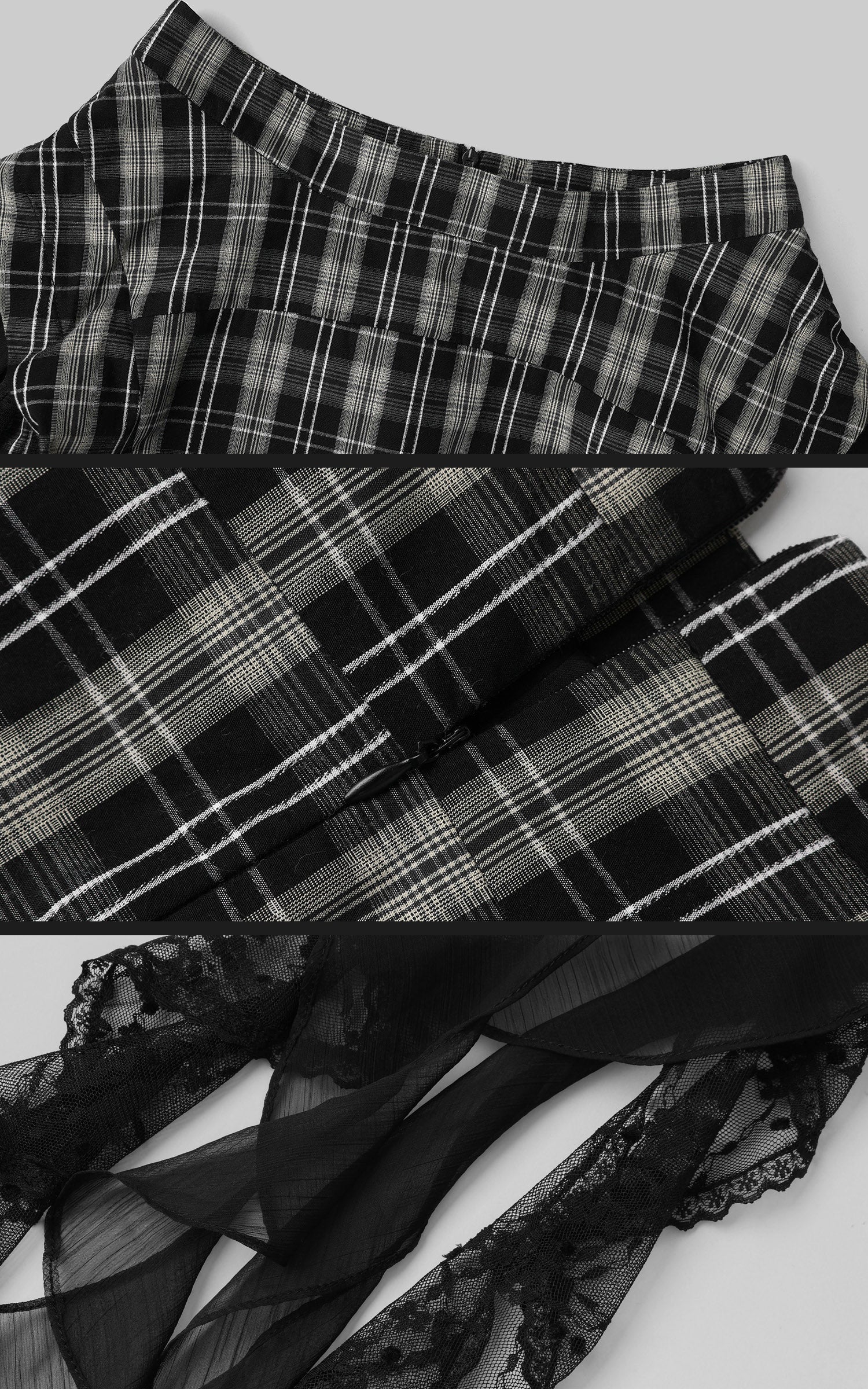 This statement plaid skirt is the epitome of edgy and deconstructed style. Featuring an irregular hemline and layered with delicate lace detailing. it adds an effortlessly rebellious vibe to your look. The mix of plaid and sheer elements brings texture and movement. perfect for standing out in street-style fashion. The skirt's fluid drape paired with its bold structure makes it a must-have for those who want to blur the lines between classic and avant-garde.