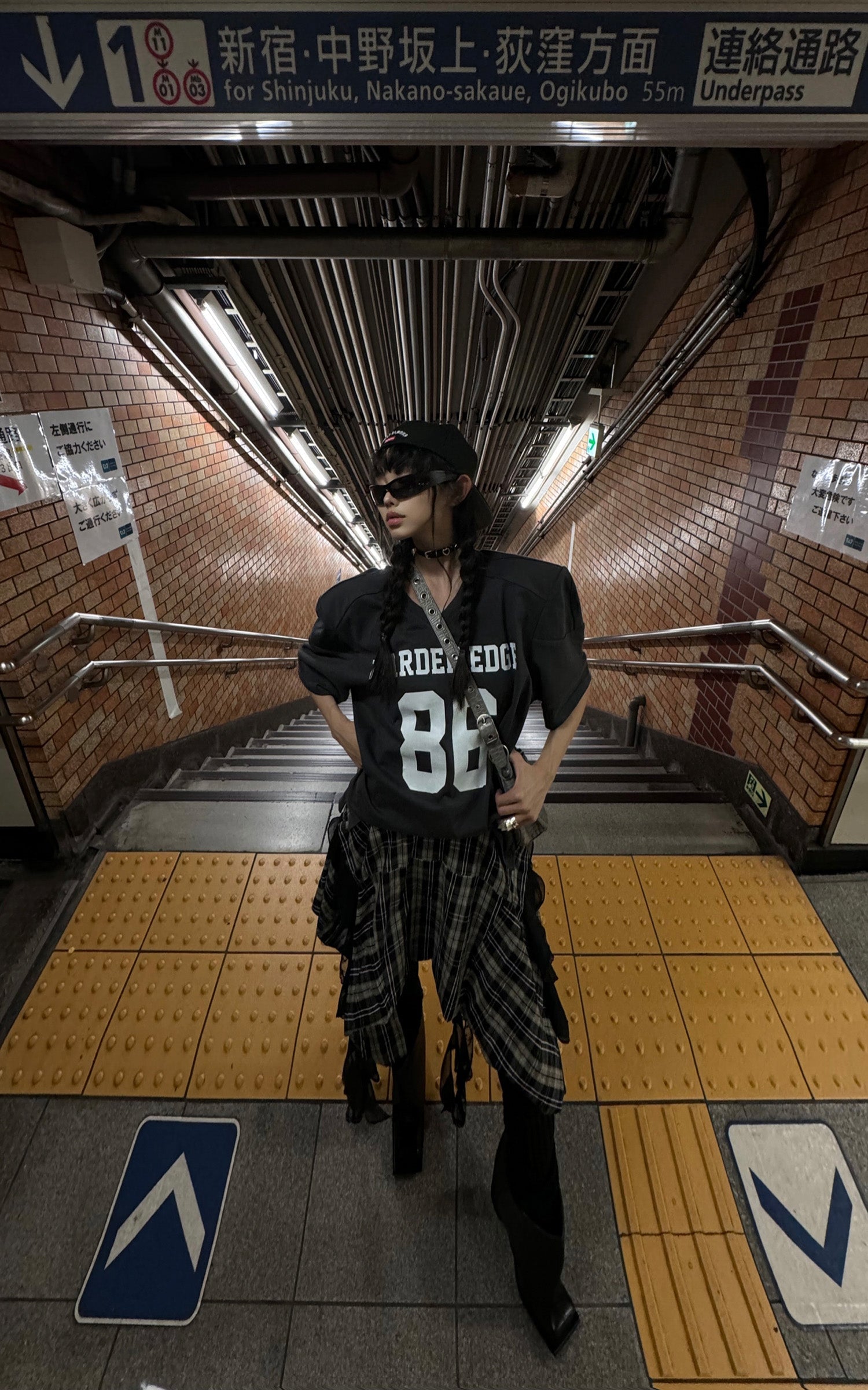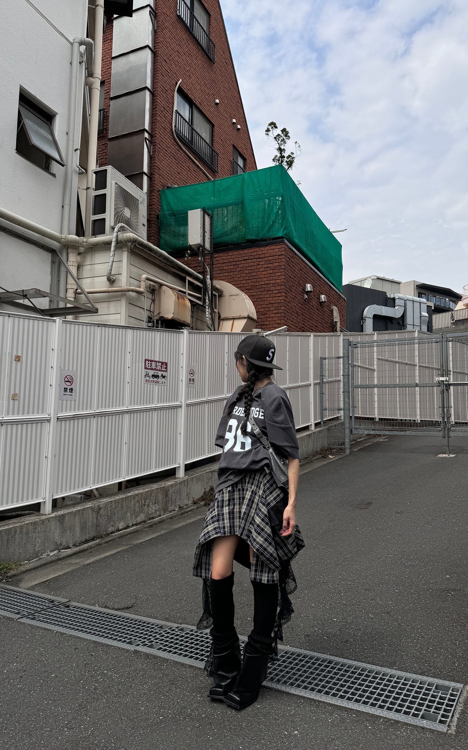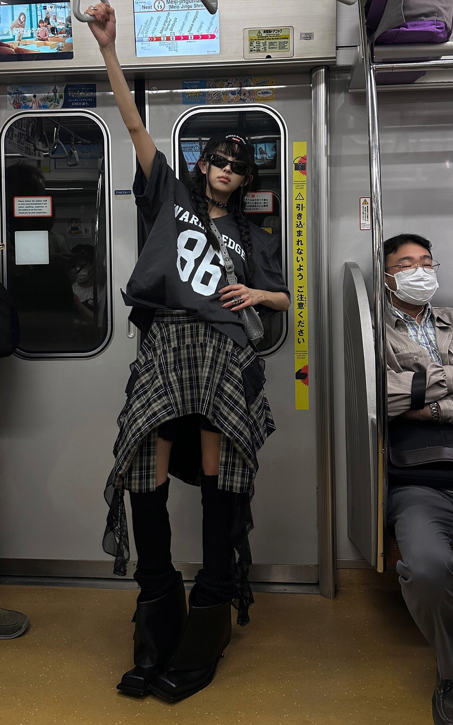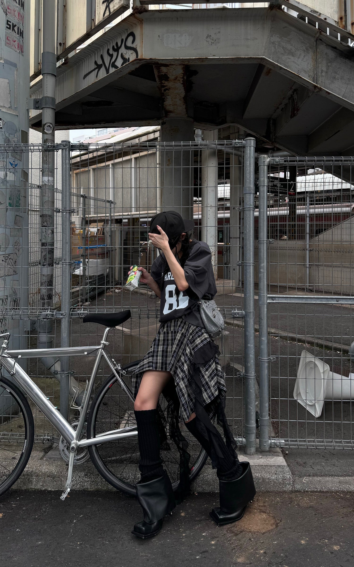 This statement plaid skirt is the epitome of edgy and deconstructed style. Featuring an irregular hemline and layered with delicate lace detailing. it adds an effortlessly rebellious vibe to your look. The mix of plaid and sheer elements brings texture and movement. perfect for standing out in street-style fashion. The skirt's fluid drape paired with its bold structure makes it a must-have for those who want to blur the lines between classic and avant-garde.