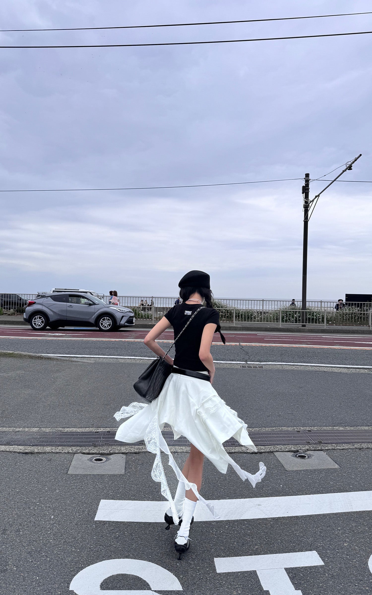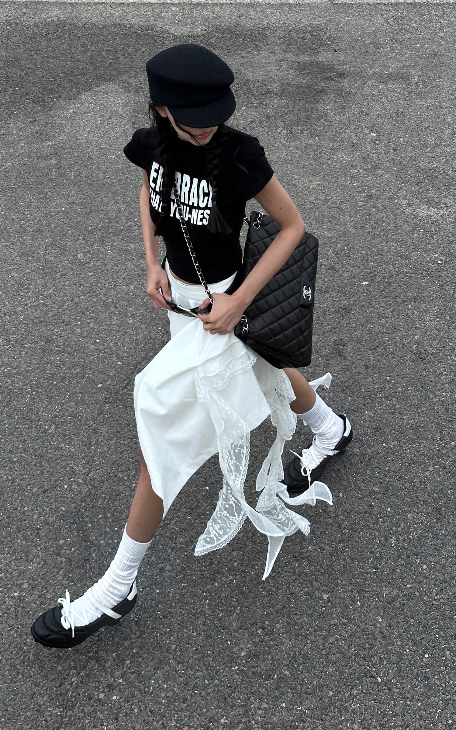 Step into the unexpected with this asymmetrical skirt. blending deconstructed design with flowing lace details. The raw edges and irregular cut create an effortlessly cool silhouette. while the lace streamers bring just the right amount of edge to keep it fresh and fearless.