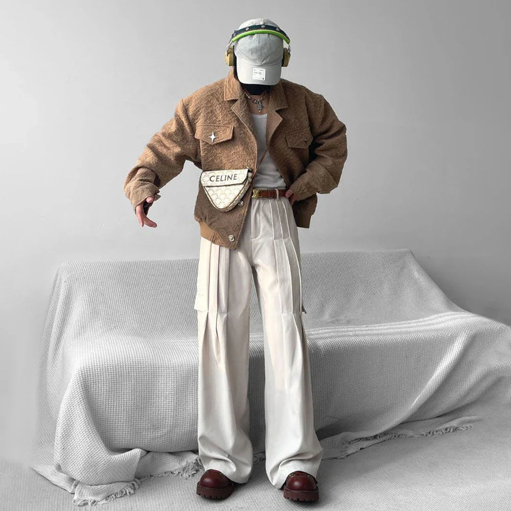 Mens Harajuku Loose Metal Decorated Y2k Short Jacket Autumn Winter Genderless Retro Casual Trendy Street Texture Jacket Unisex