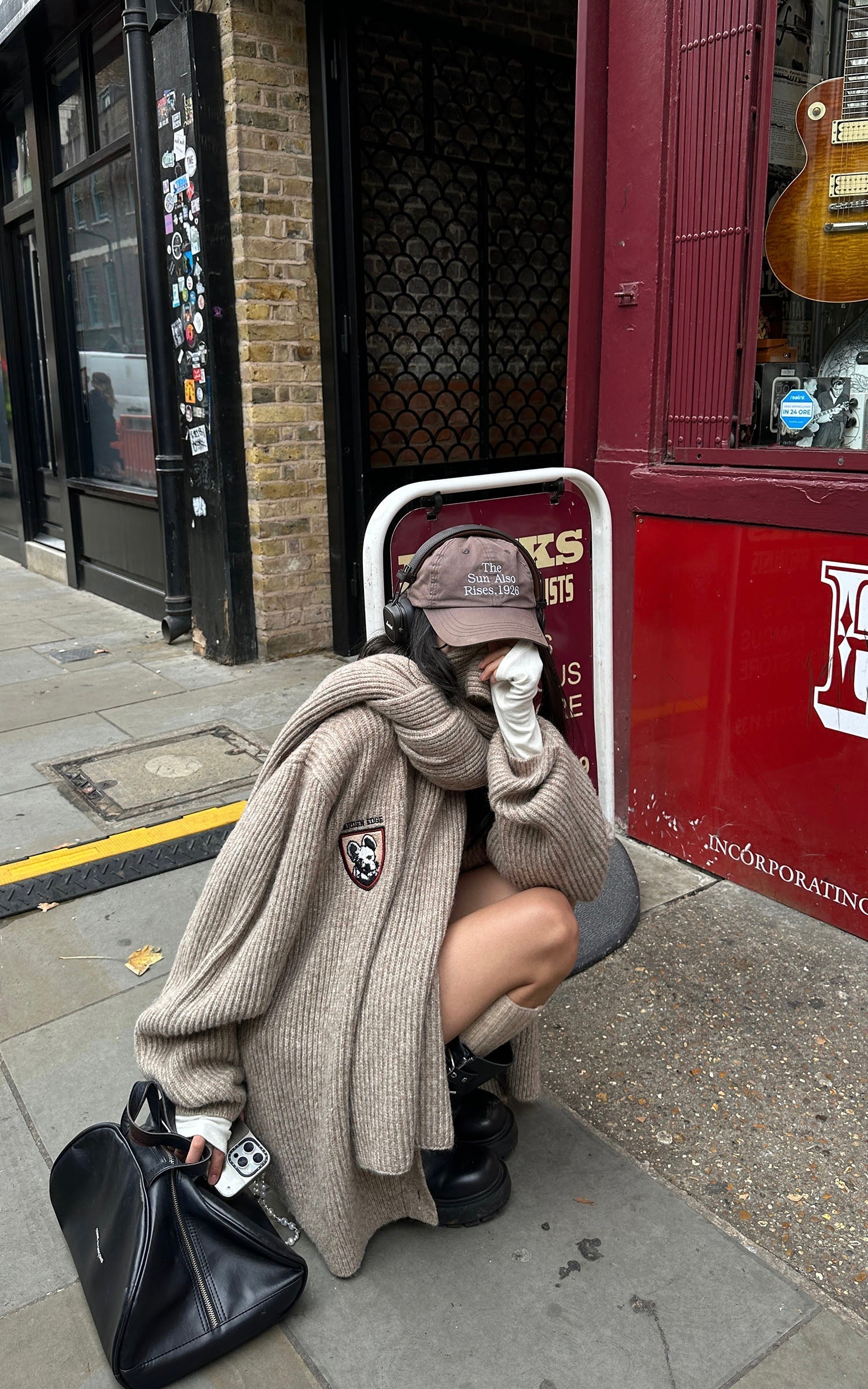 An effortlessly sophisticated knitted cardigan and scarf set designed for comfort and versatility. The oversized cardigan features a soft ribbed texture. detailed with a unique patch accent. and is complemented by a matching scarf. Crafted from a premium wool blend. this ensemble ensures warmth while elevating your daily wardrobe. Style the cardigan over a simple tee or layered with other essentials for a relaxed. layered look.