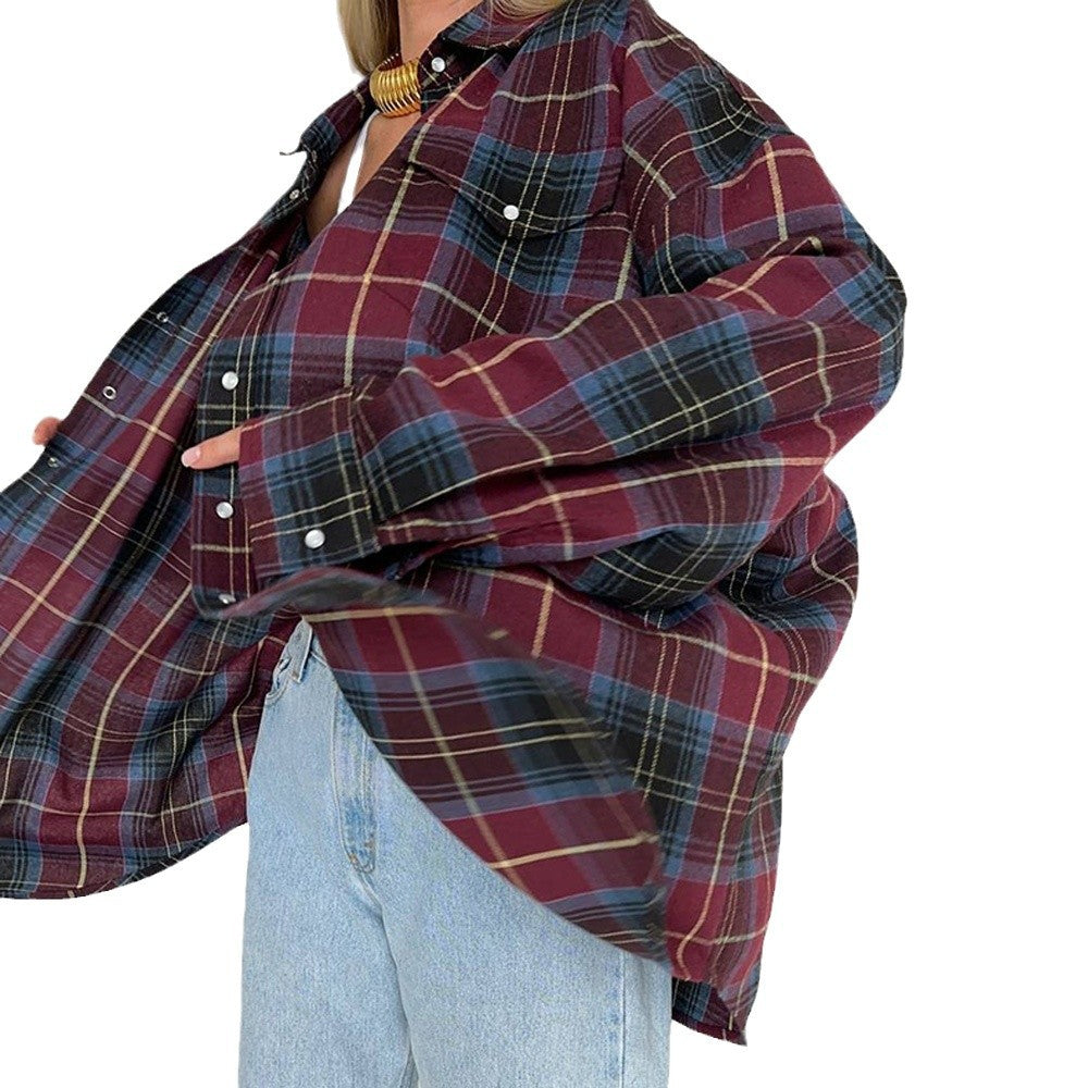 Description: Women's plaid shirt, one pocket in front, button closure, lapel collar plaid shirts, checkered blouses, long sleeves with button cuffs, classic fit plaid shirts.