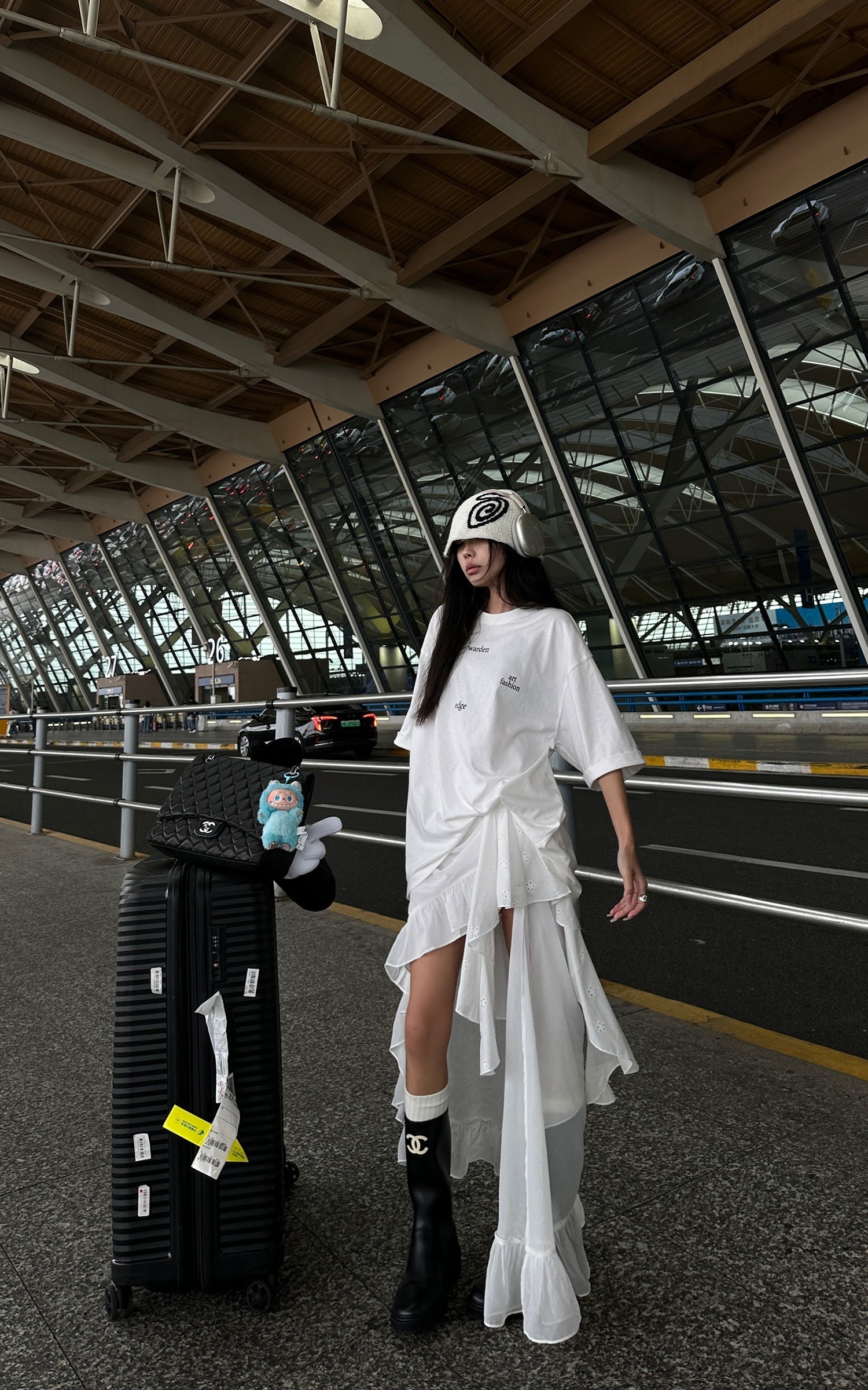 This midi skirt deconstructs the ordinary with asymmetric ruffles. layered sheers. and raw elegance. Combining broderie anglaise with soft chiffon and jersey trims. it wraps around the body like a fragmented memory of romance and resistance. Unbalanced by design. this piece reshapes softness into strength—flowing with intention. cut to provoke.