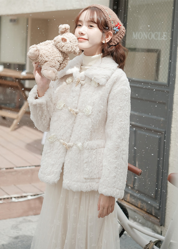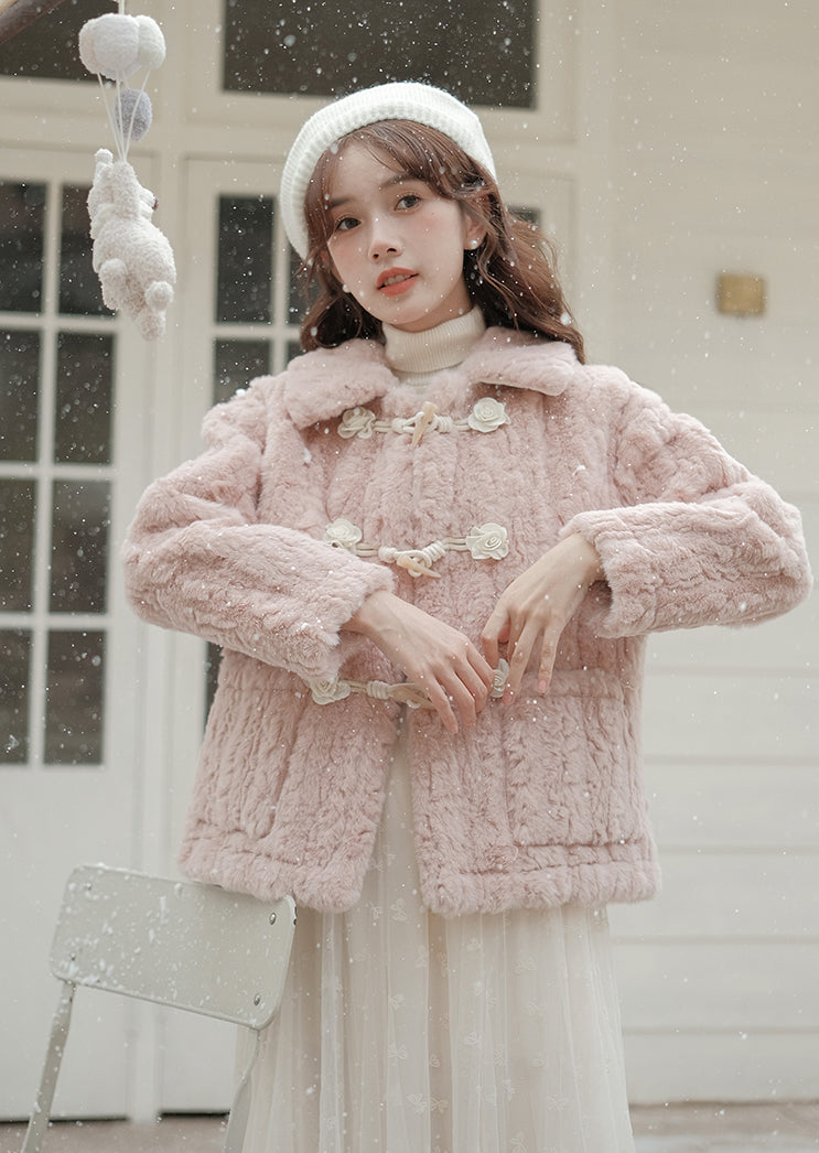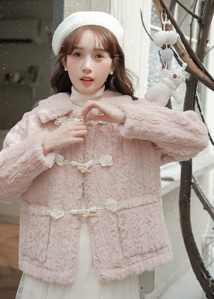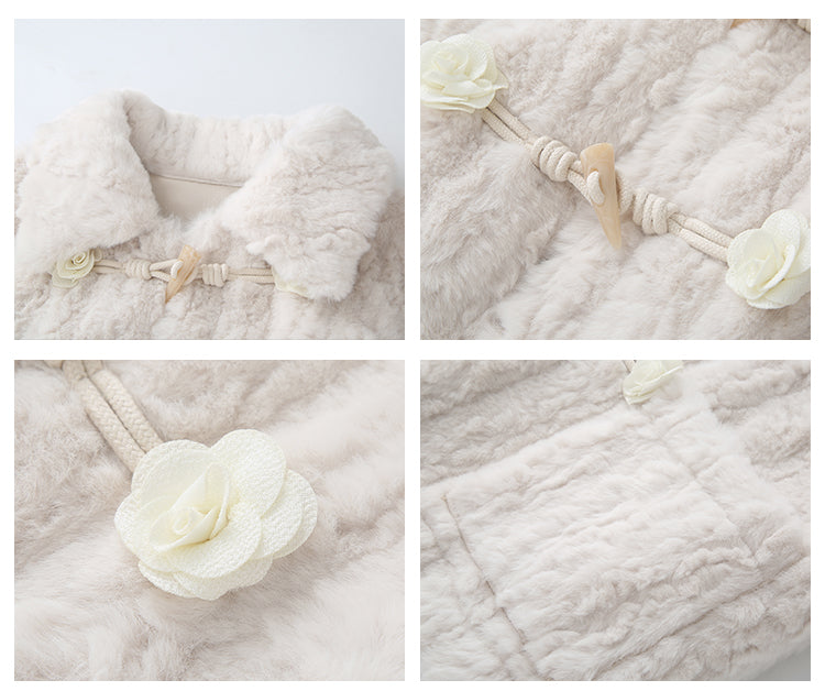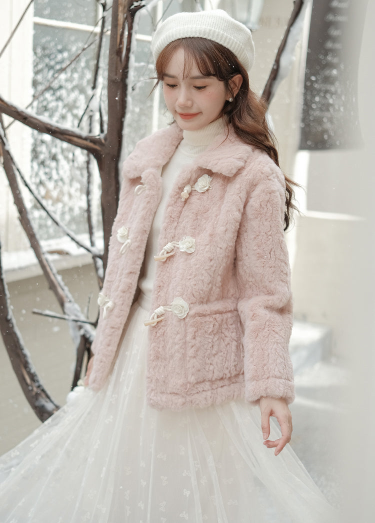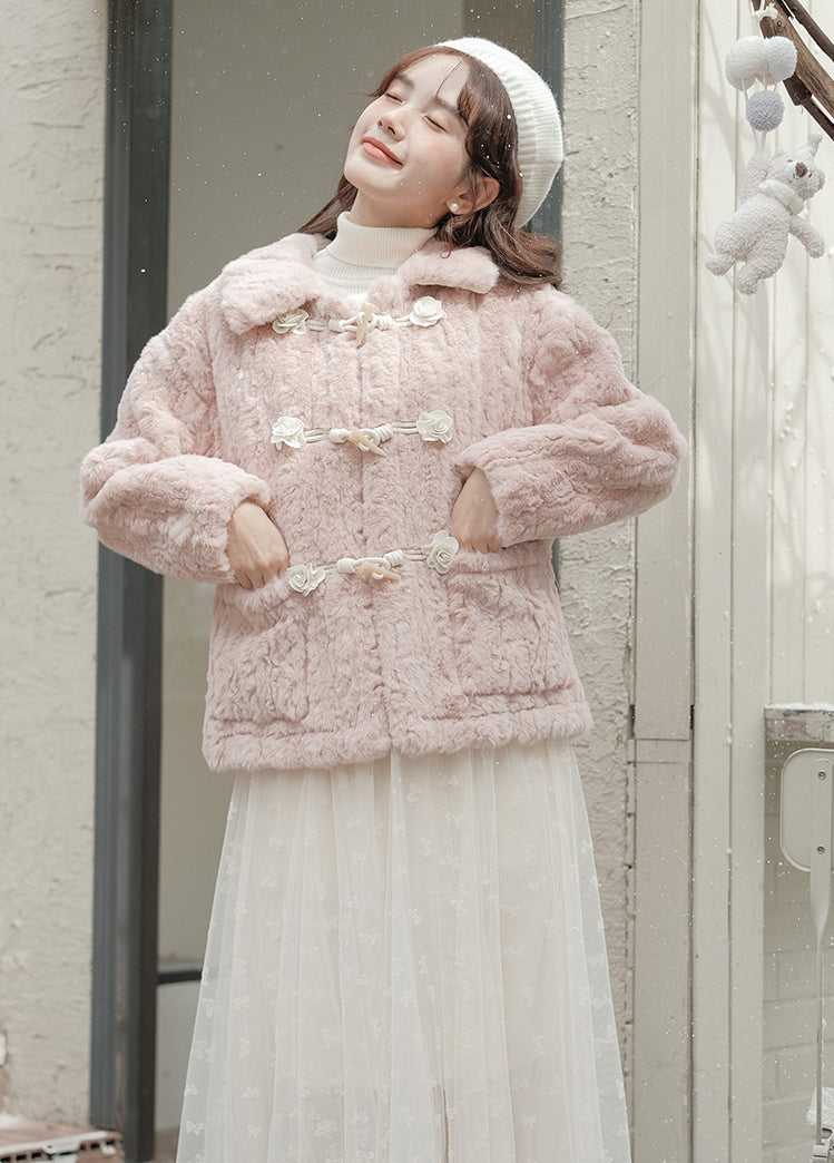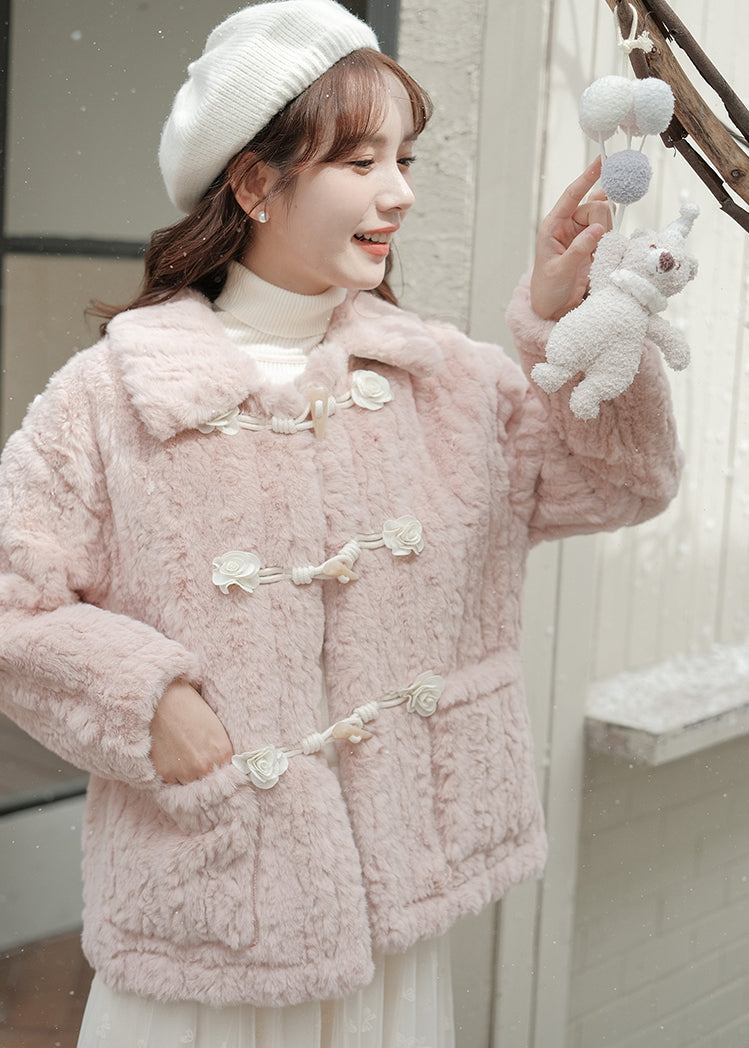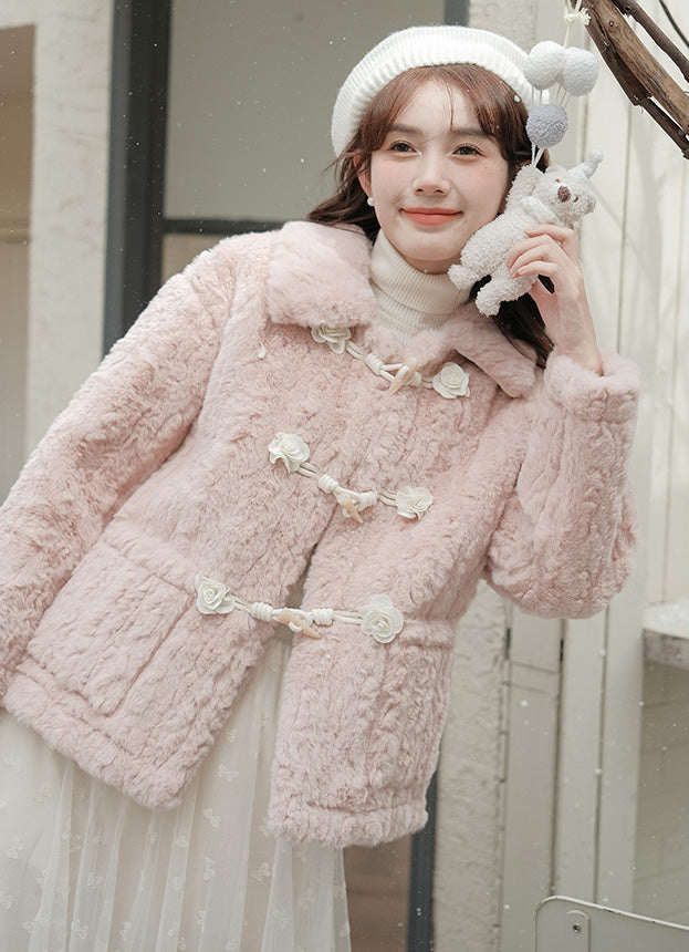 Chaqueta de piel sintética con cierre de rosas, botones de palanca y grandes bolsillos laterales.