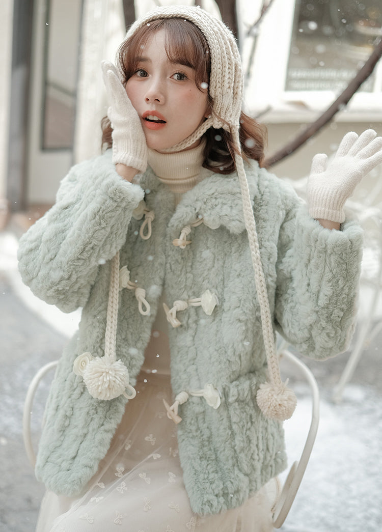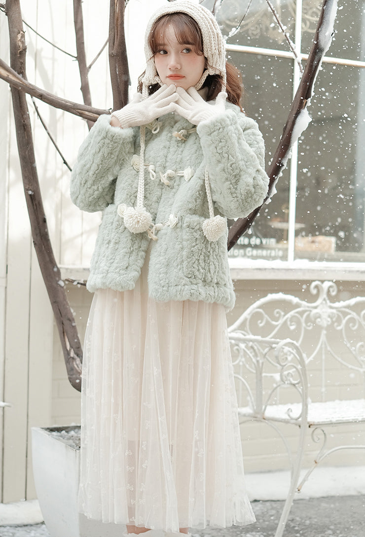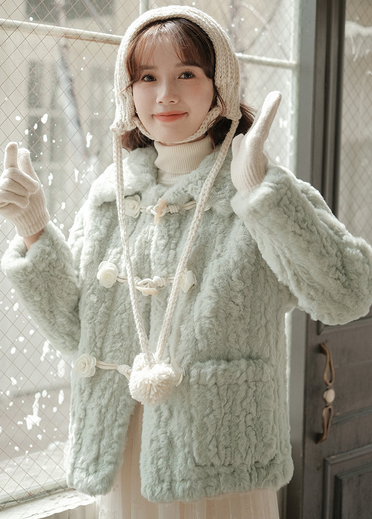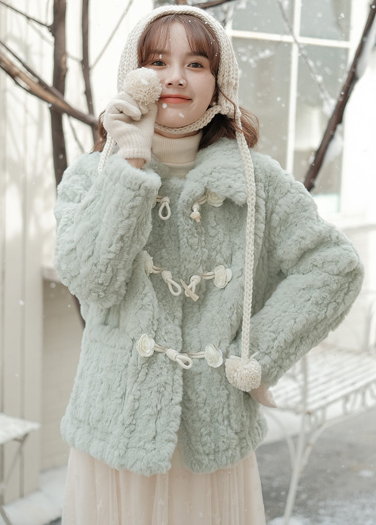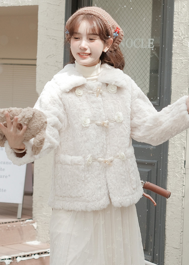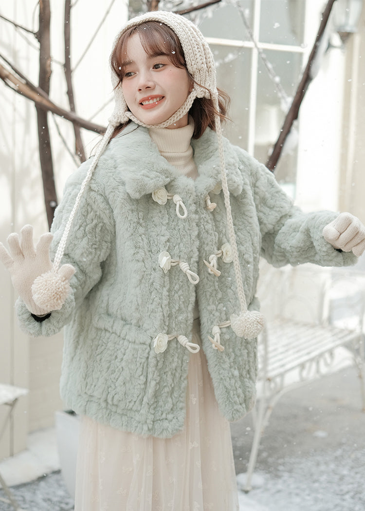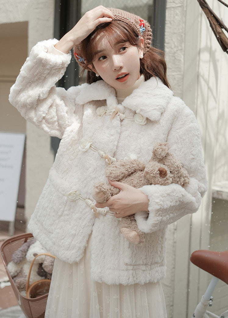 Chaqueta de piel sintética con cierre de rosas, botones de palanca y grandes bolsillos laterales.