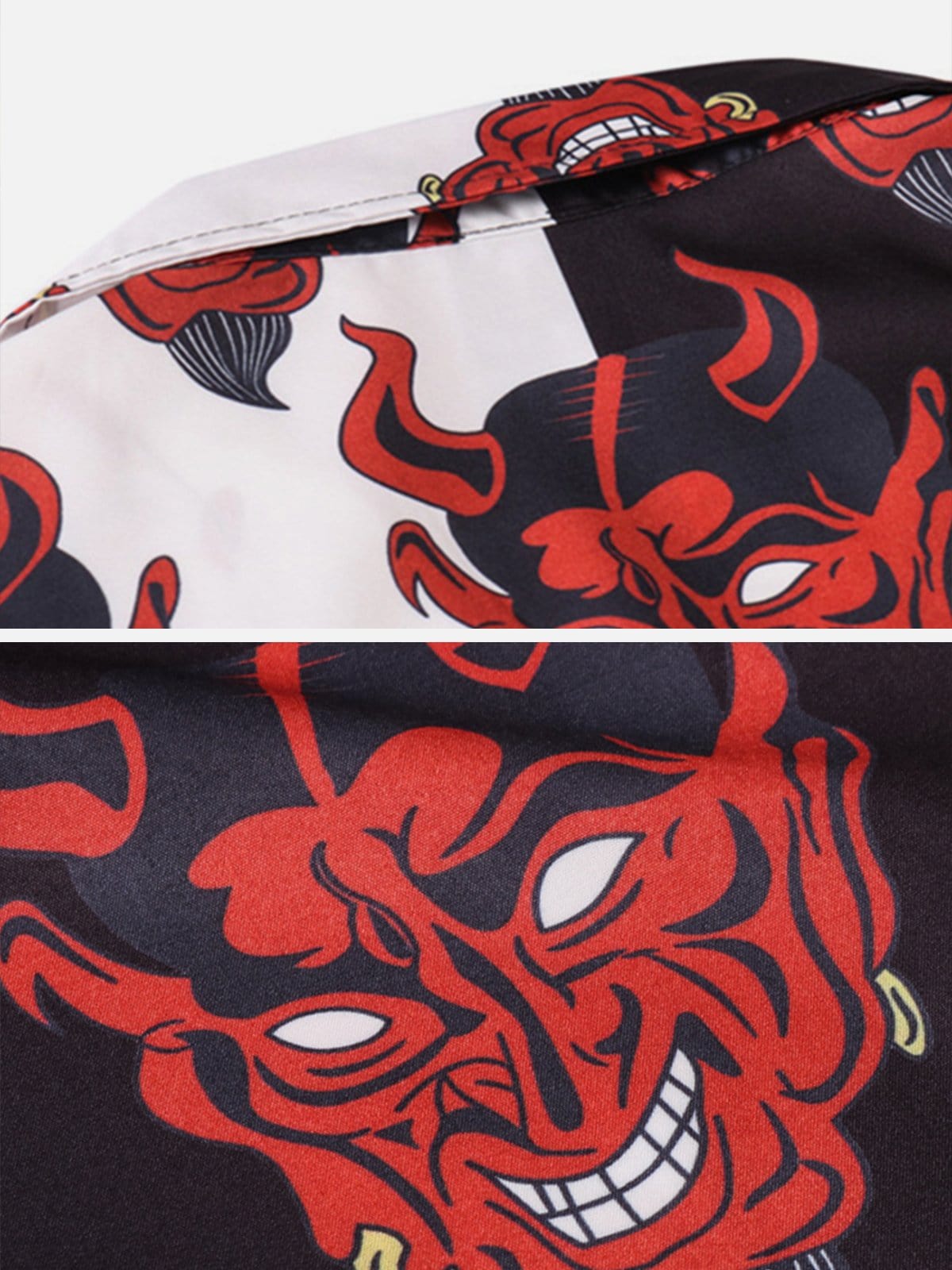 Detalles de la ropa : patchwork. Cabeza de diablo.