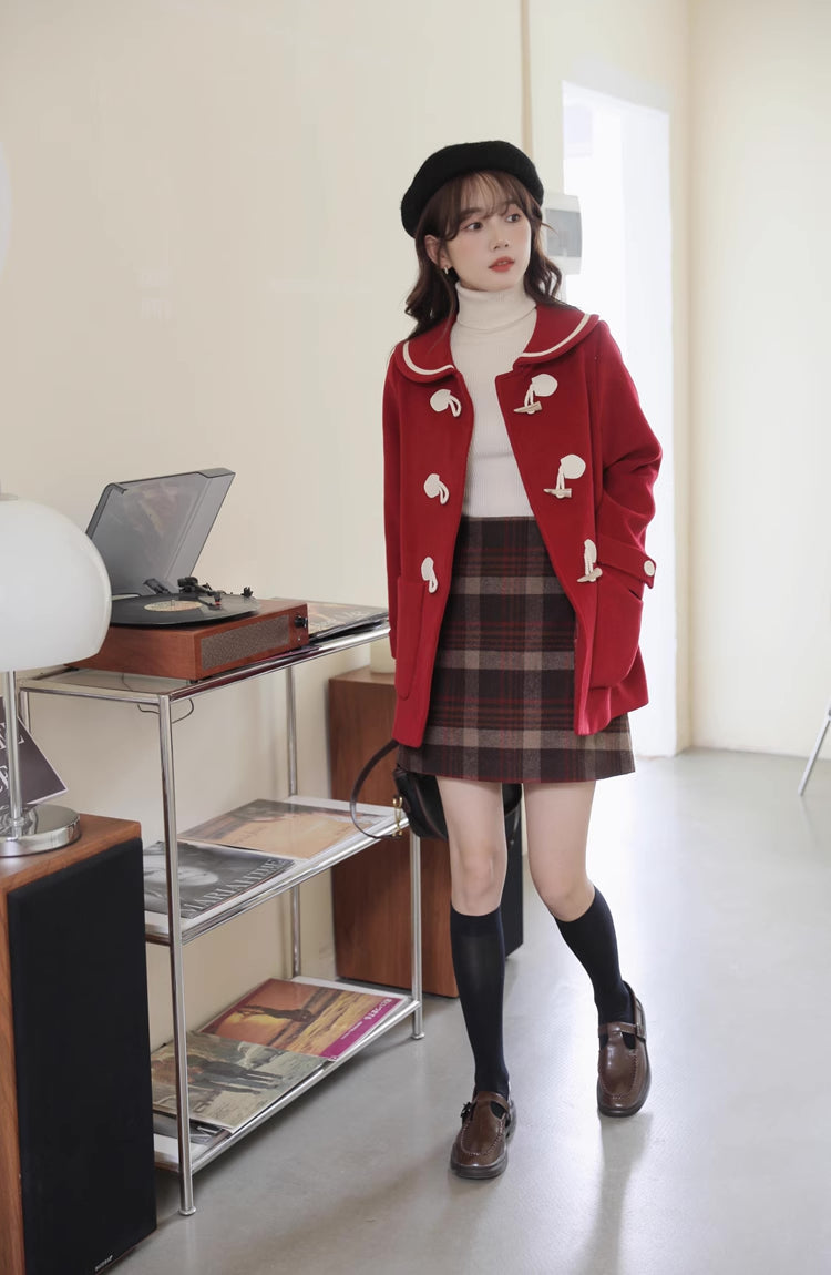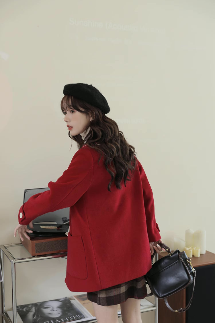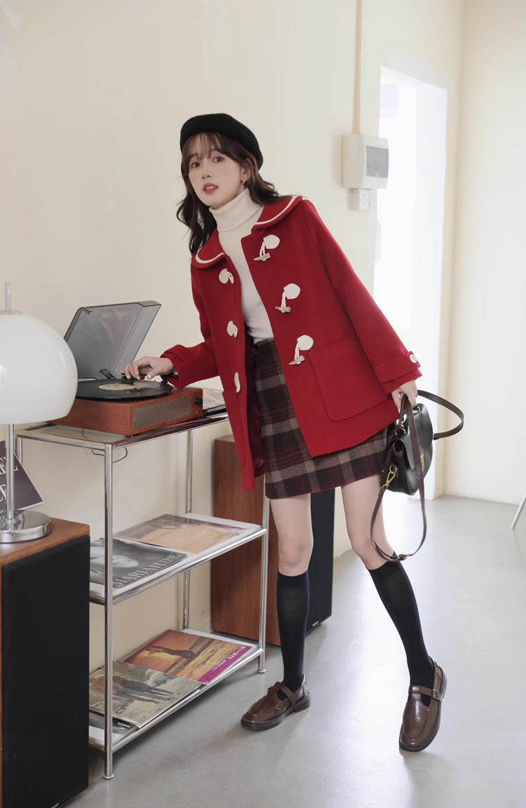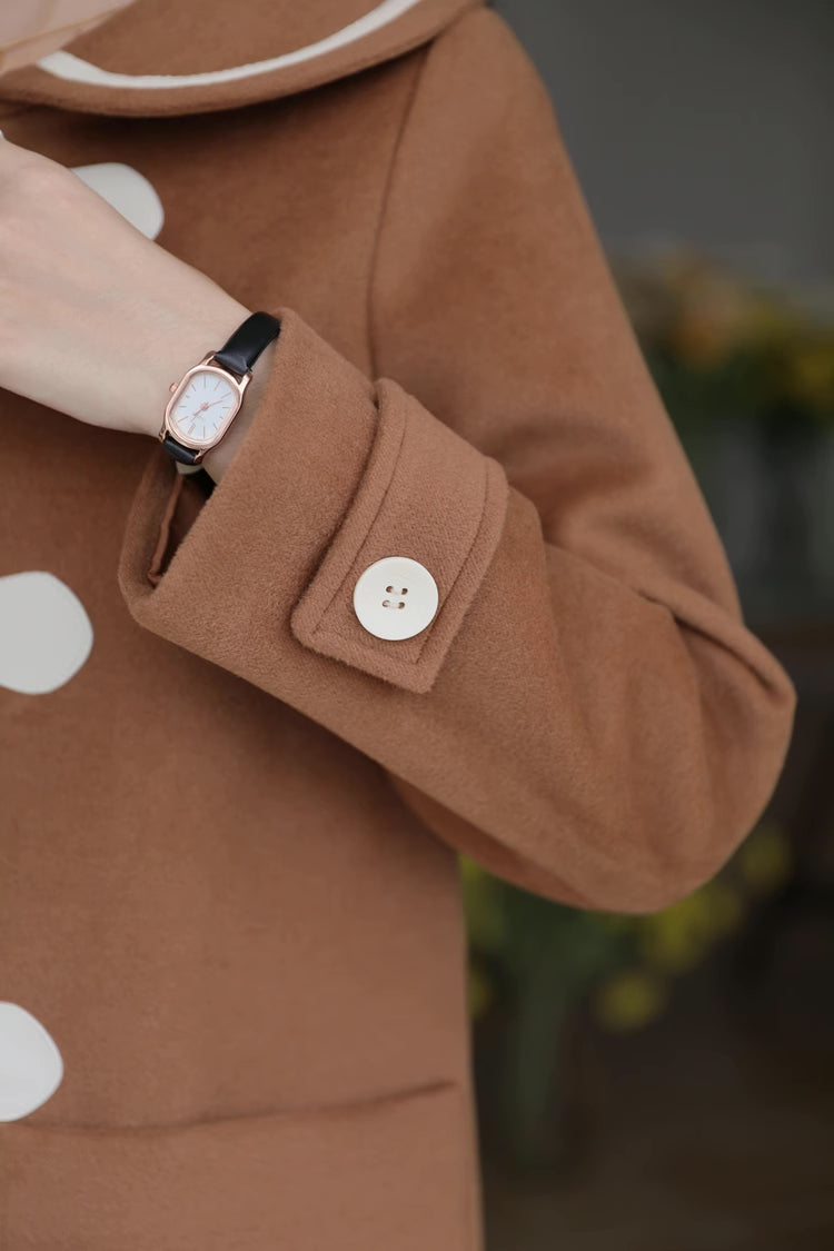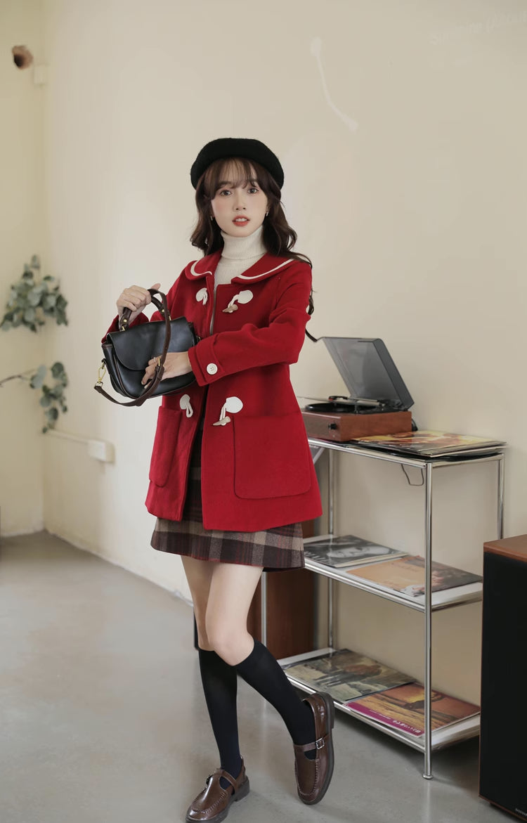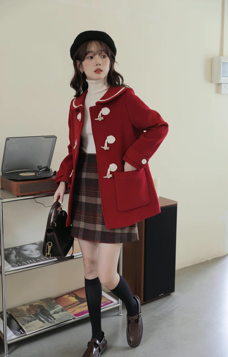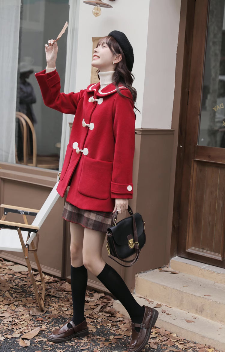 Chaqueta corta tipo trenca con cuello Peter Pan redondeado. Botones de palanca y amplios bolsillos laterales. Forrada.