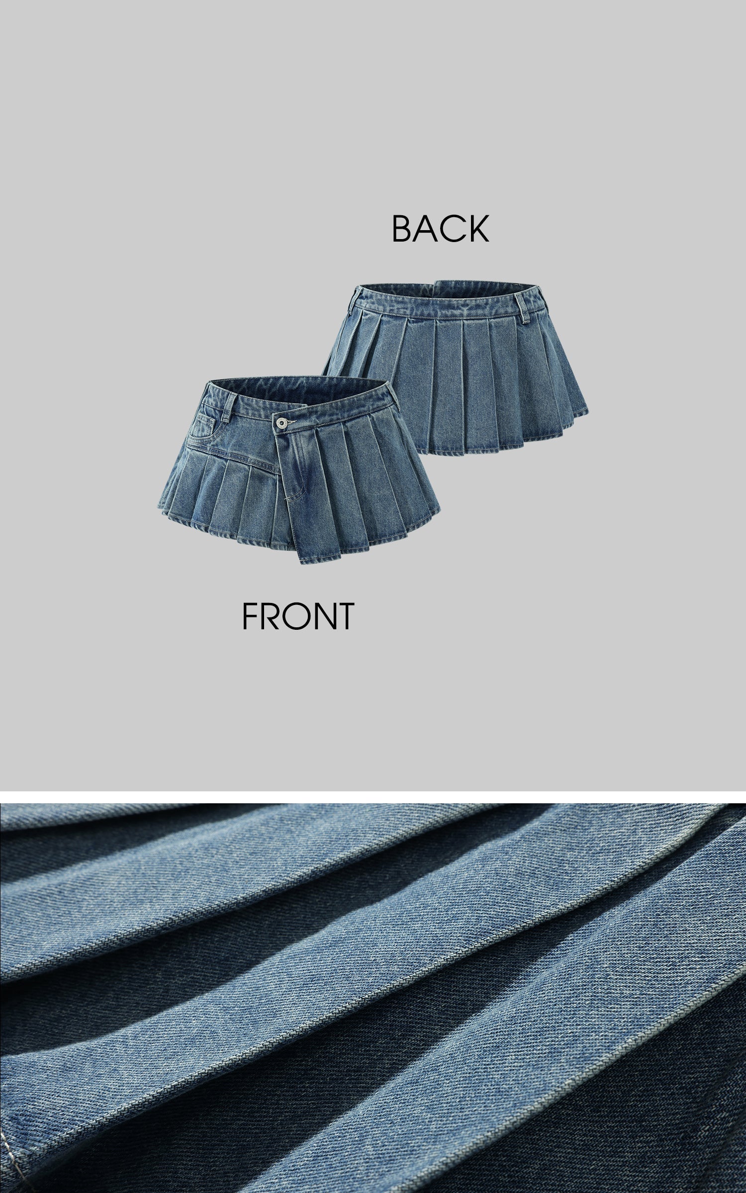A raw-cut reimagination of the classic schoolgirl skirt. this ultra mini piece redefines proportions with bold irreverence. Crafted from washed denim with sharp knife pleats throughout. it features an asymmetric mock fly detail and integrated built-in shorts for function beneath form. The low-rise waist is punctuated with traditional belt loops and a contrast metal shank button. keeping the edge grounded in utilitarian roots. Style it with a tank. heavy boots. or layered chains to echo the streetscape it was made for.