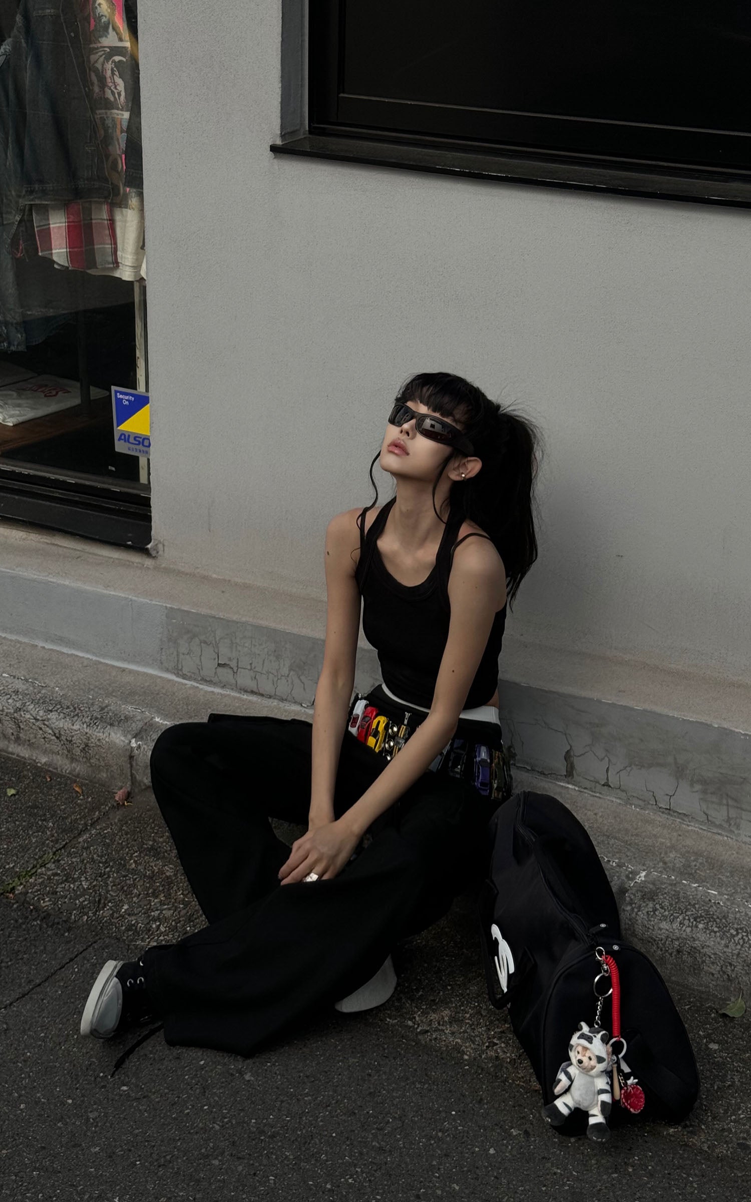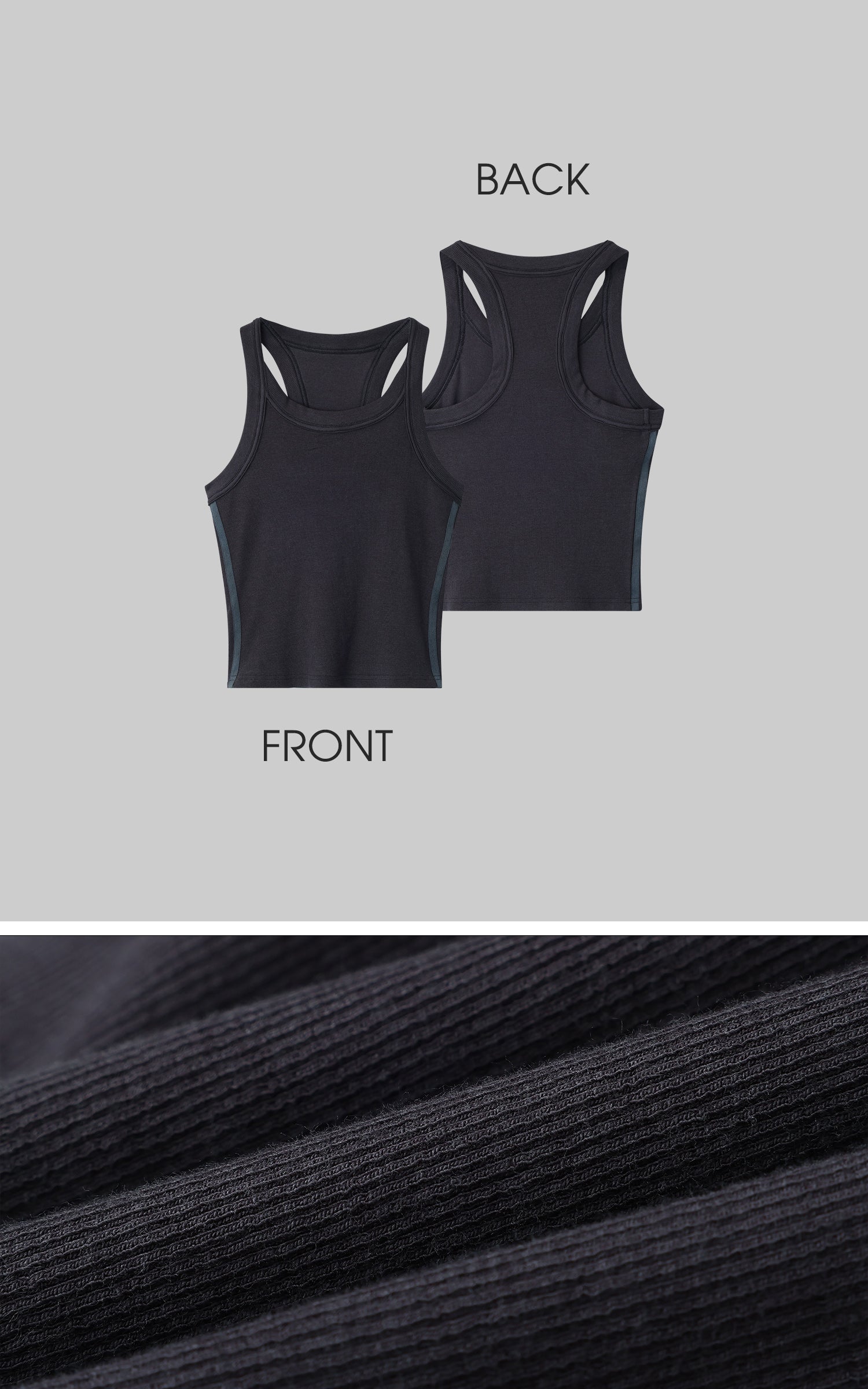 Unleash the essence of modern minimalism with this ribbed racerback tank top. Designed for bold expressions and versatile layering. this piece redefines edgy elegance. The fitted silhouette embraces a streamlined aesthetic. while the subtle side stripes add a touch of contrast. Whether paired with oversized denim for a casual street vibe or layered under a structured blazer. this tank is your go-to for effortlessly cool looks.
