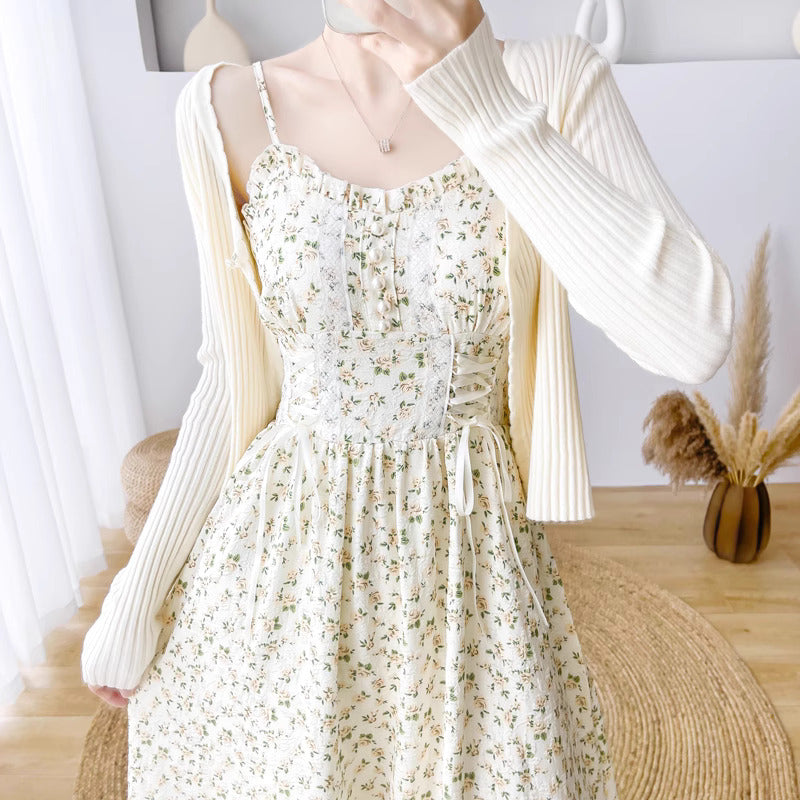 Vestido midi de tirantes con escote corazón. Botones de perla y cintura corsé con cordones. Tirantes ajustables. Espalda elástica. Forrado.