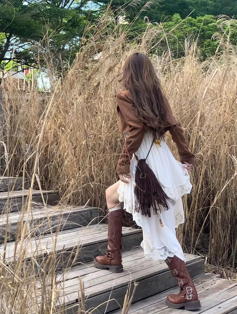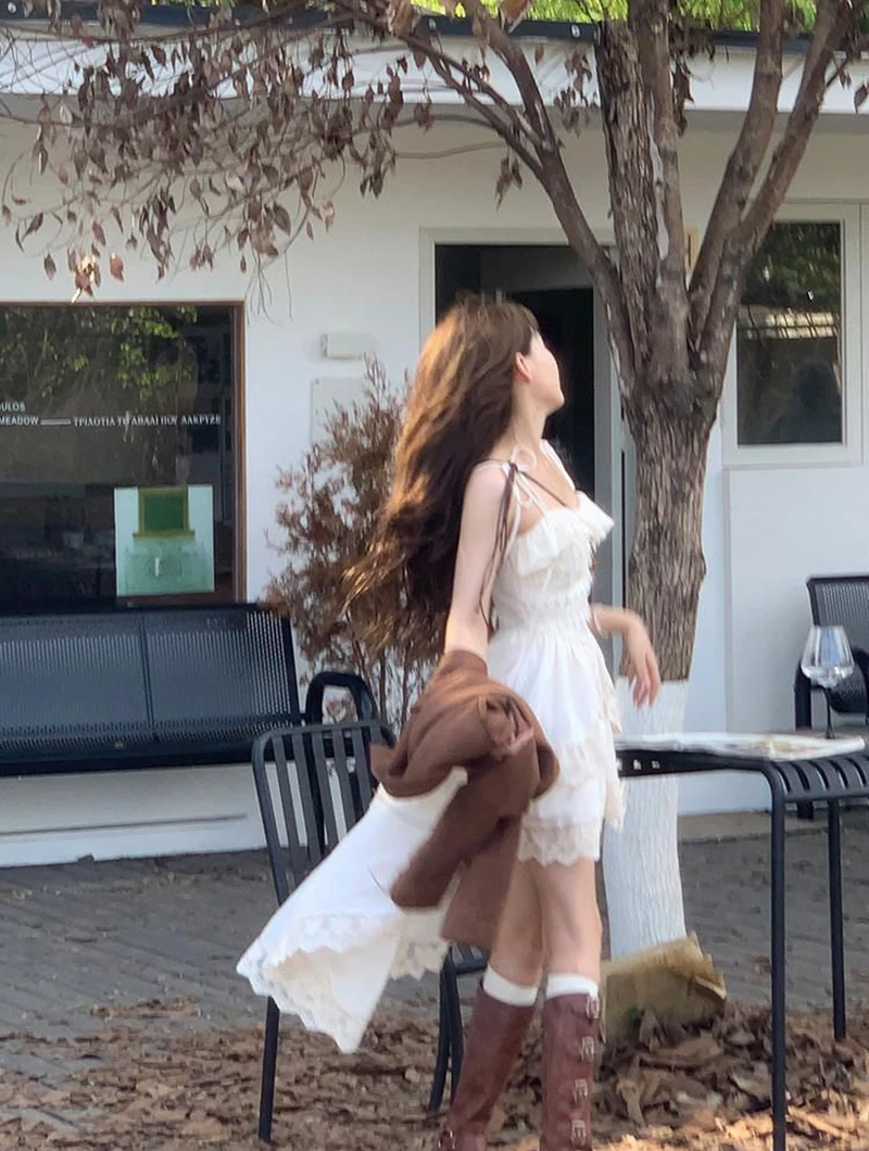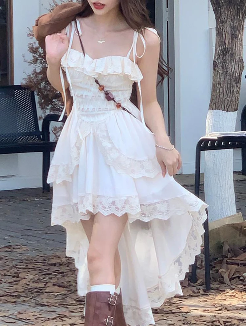 Y2K 2000S Irregular Midi Dress Women Fairy Lace Patchwork Strap One Pieces Dresses Summer Vacation Korean Bodycon Vestidos