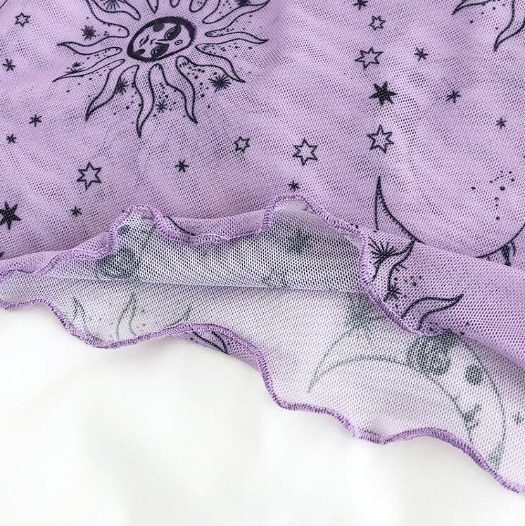 Lettuce edge mesh crop top with the sun. moon and stars all over.