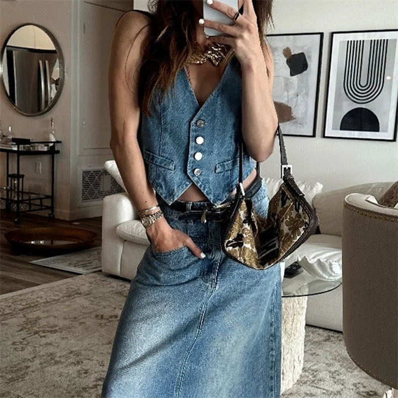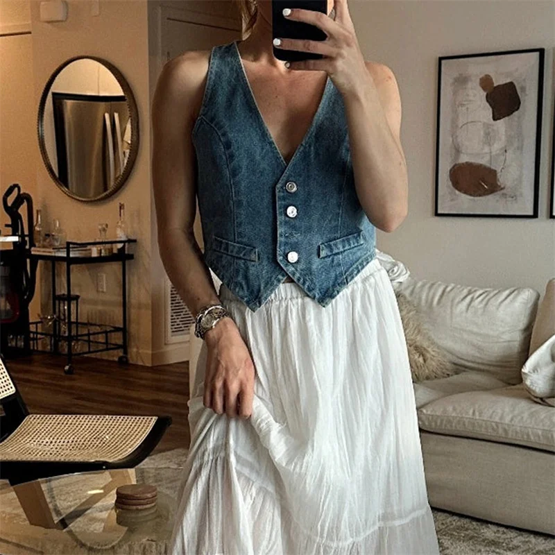Denim Vest y2k Clothes Women Summer V Neck Button Front Sleeveless Tank Tops Jean Waistcoat 2000s Clothes Streetwear
