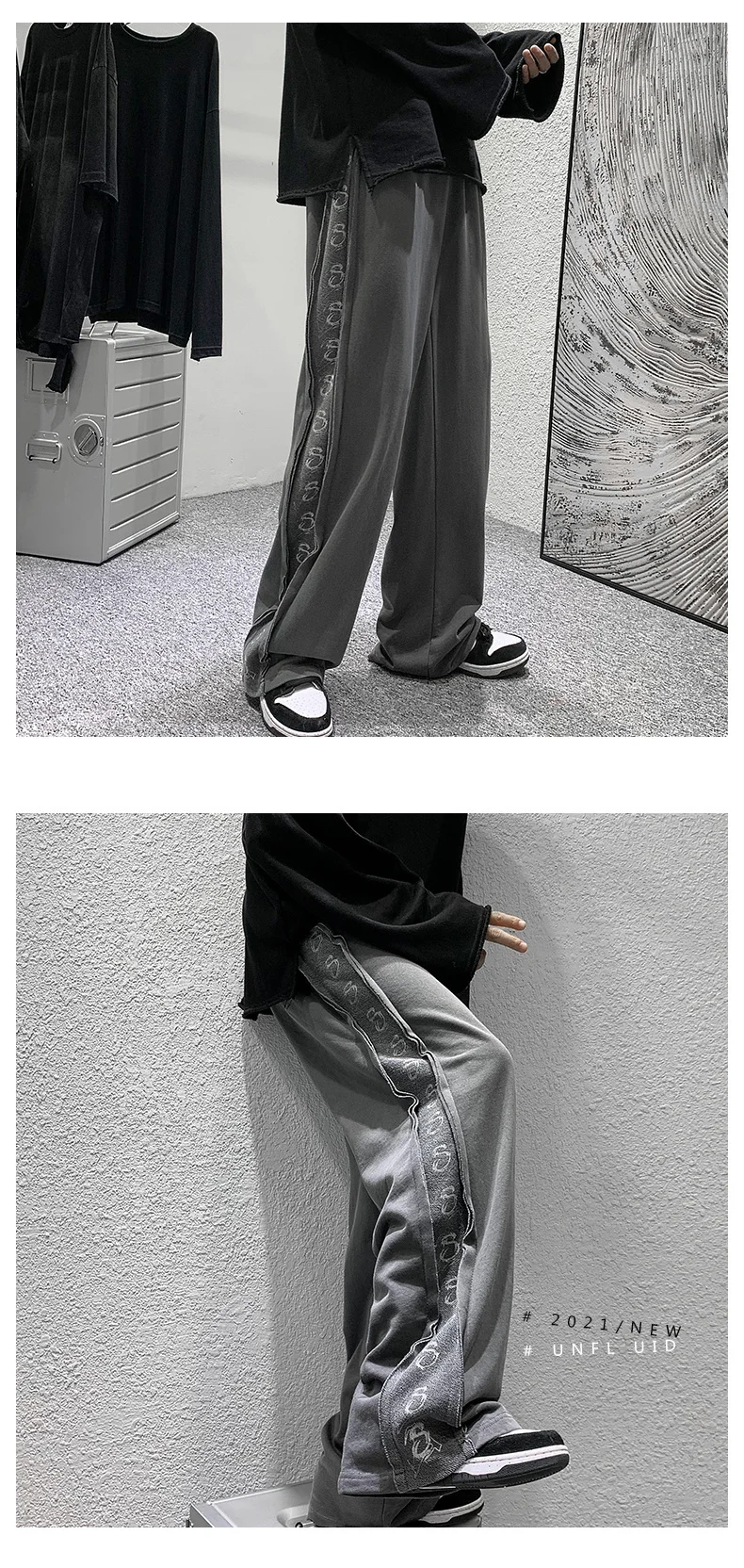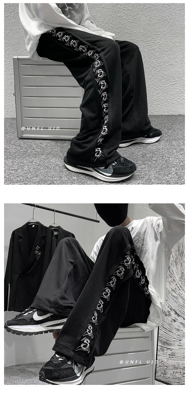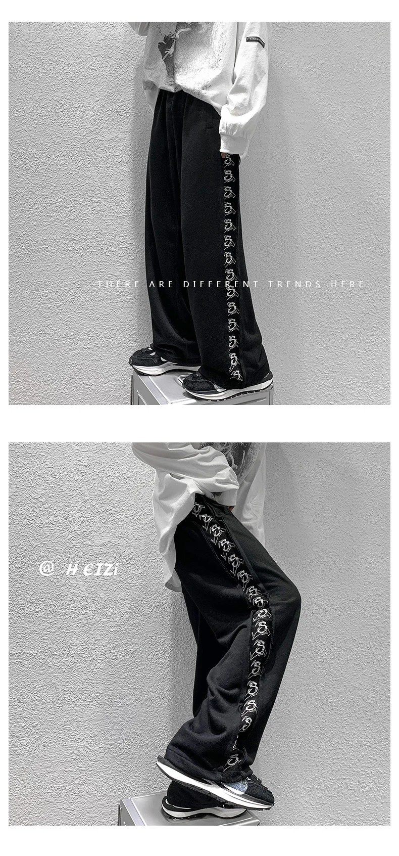 High Street Casual Pants Harajuku Y2K Letter Print Design Oversize Straight Black Pant America Vintage Trousers