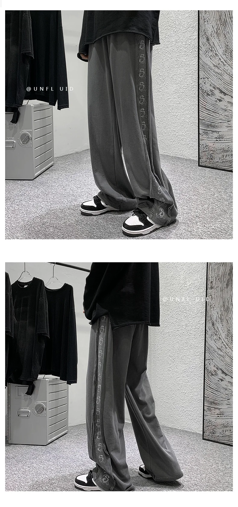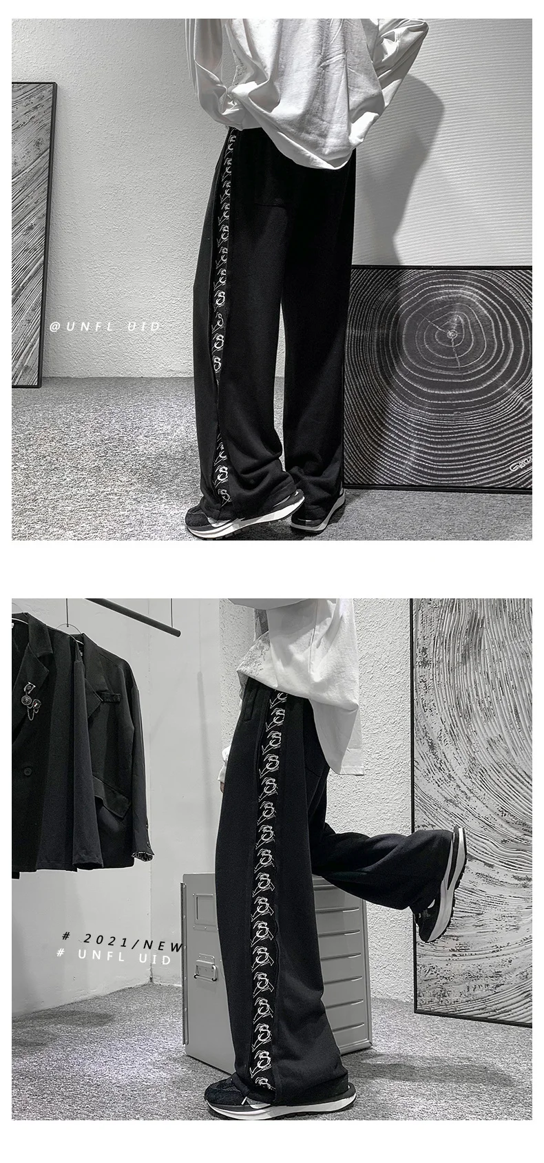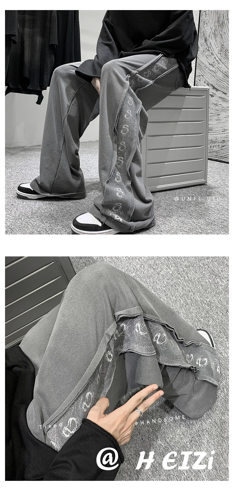 High Street Casual Pants Harajuku Y2K Letter Print Design Oversize Straight Black Pant America Vintage Trousers
