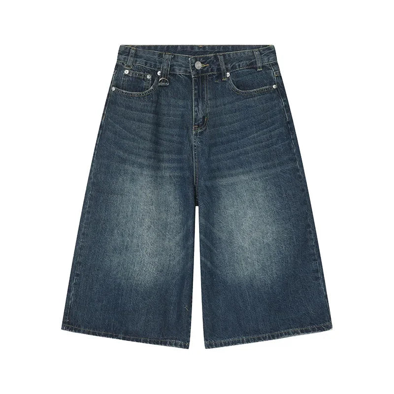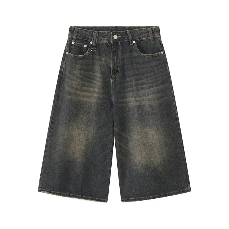 Men's Jeans American Style Vintage Loose Fit Wide Leg Straight Leg Denim Shorts Fashion Design Summer Y2k Gothic Washed Shorts