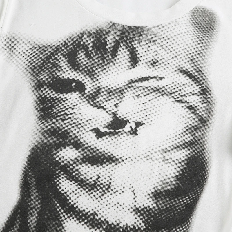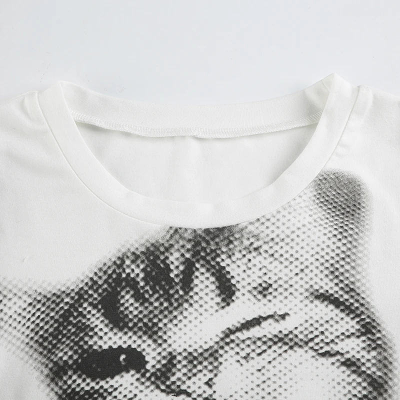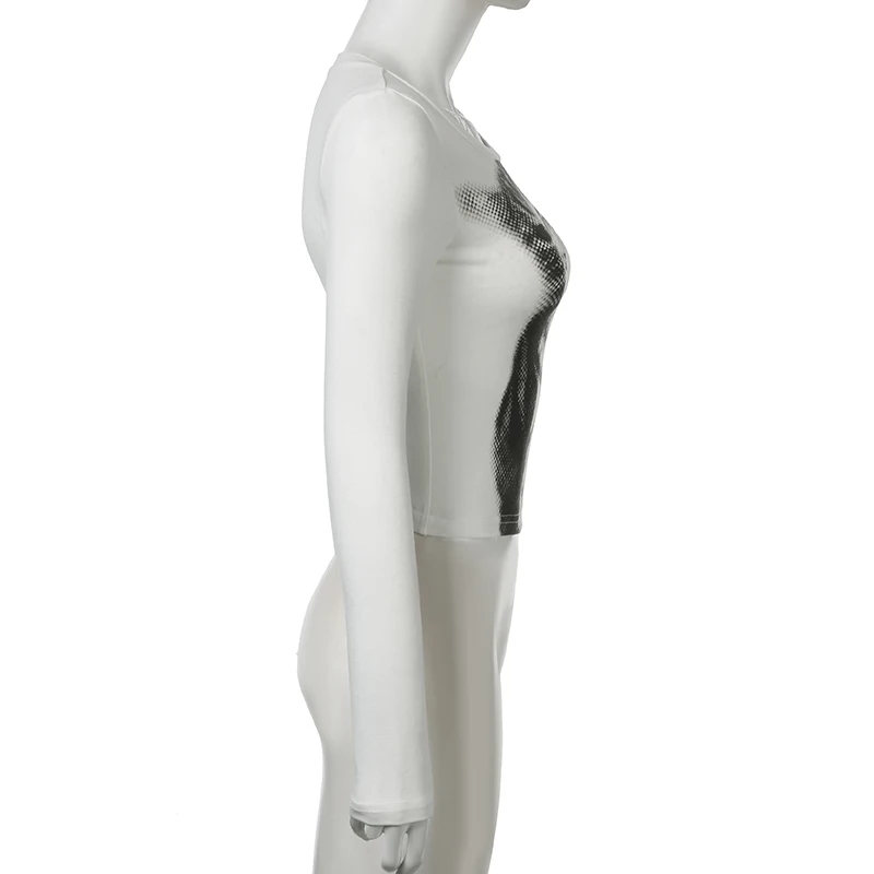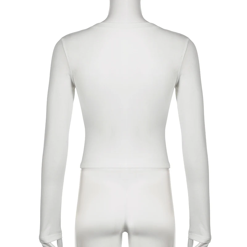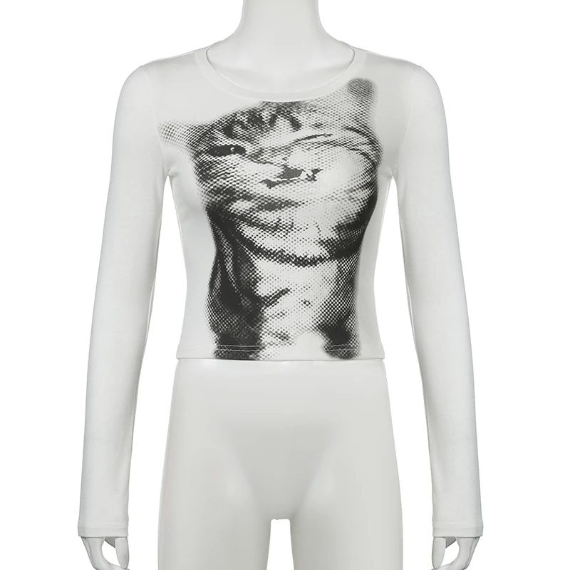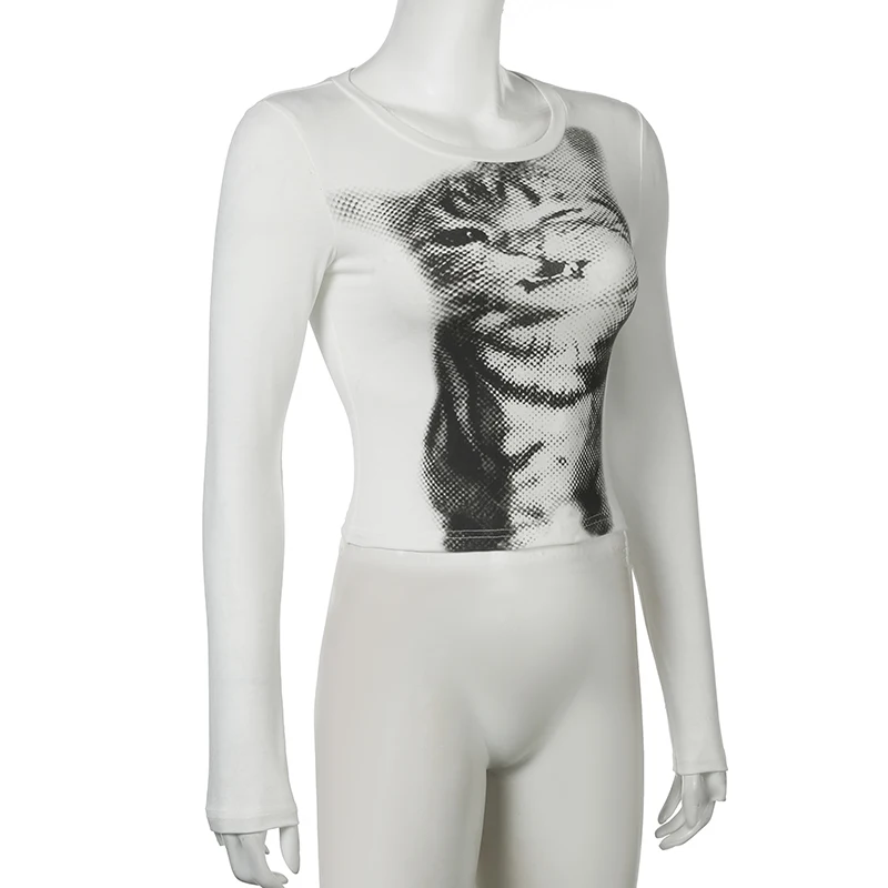 Kawaii Animal Print Cropped Top White Long Sleeve Slim-fitting T Shirt Women Casual Basic Elastic Tees y2k Aesthetic Lady