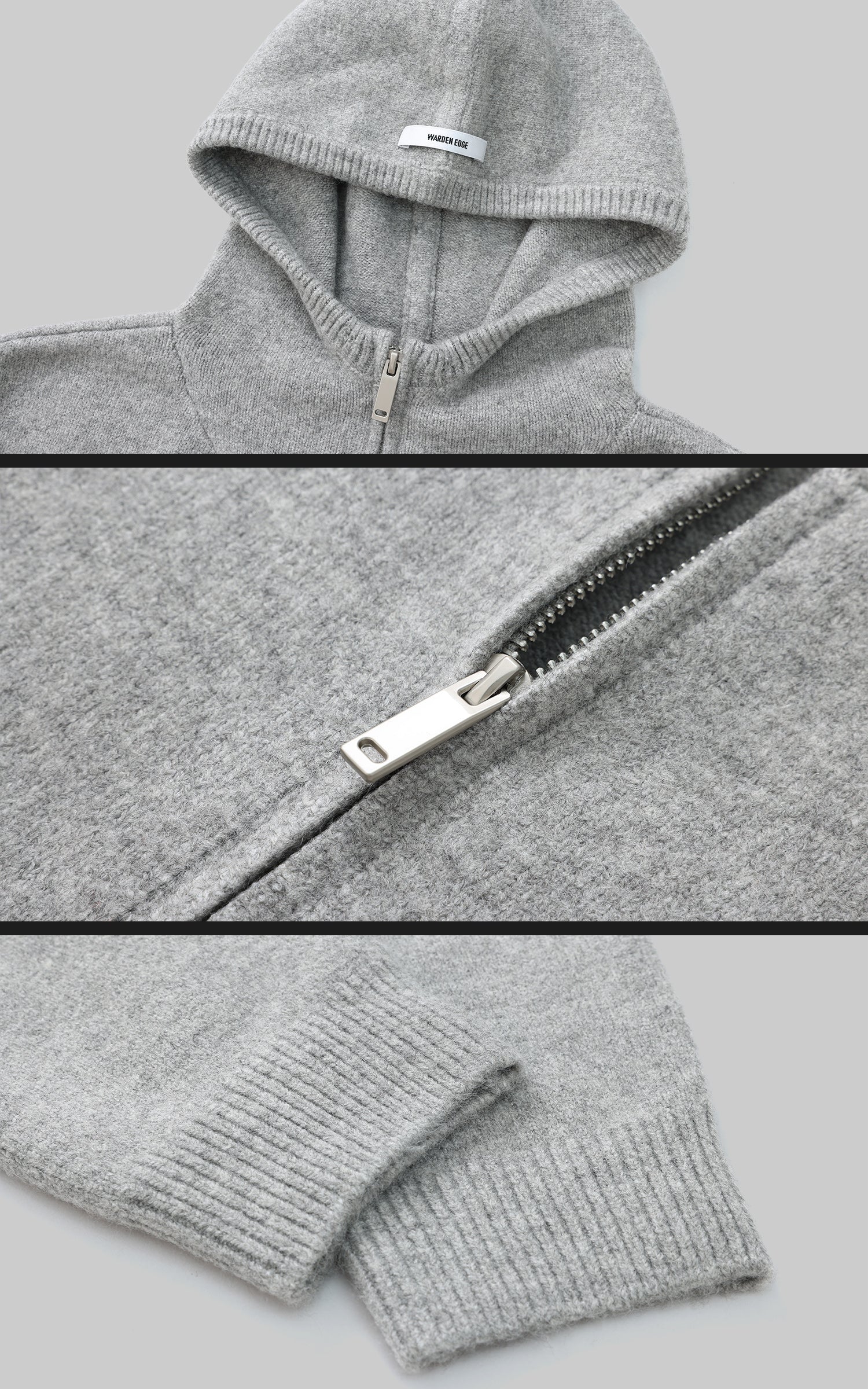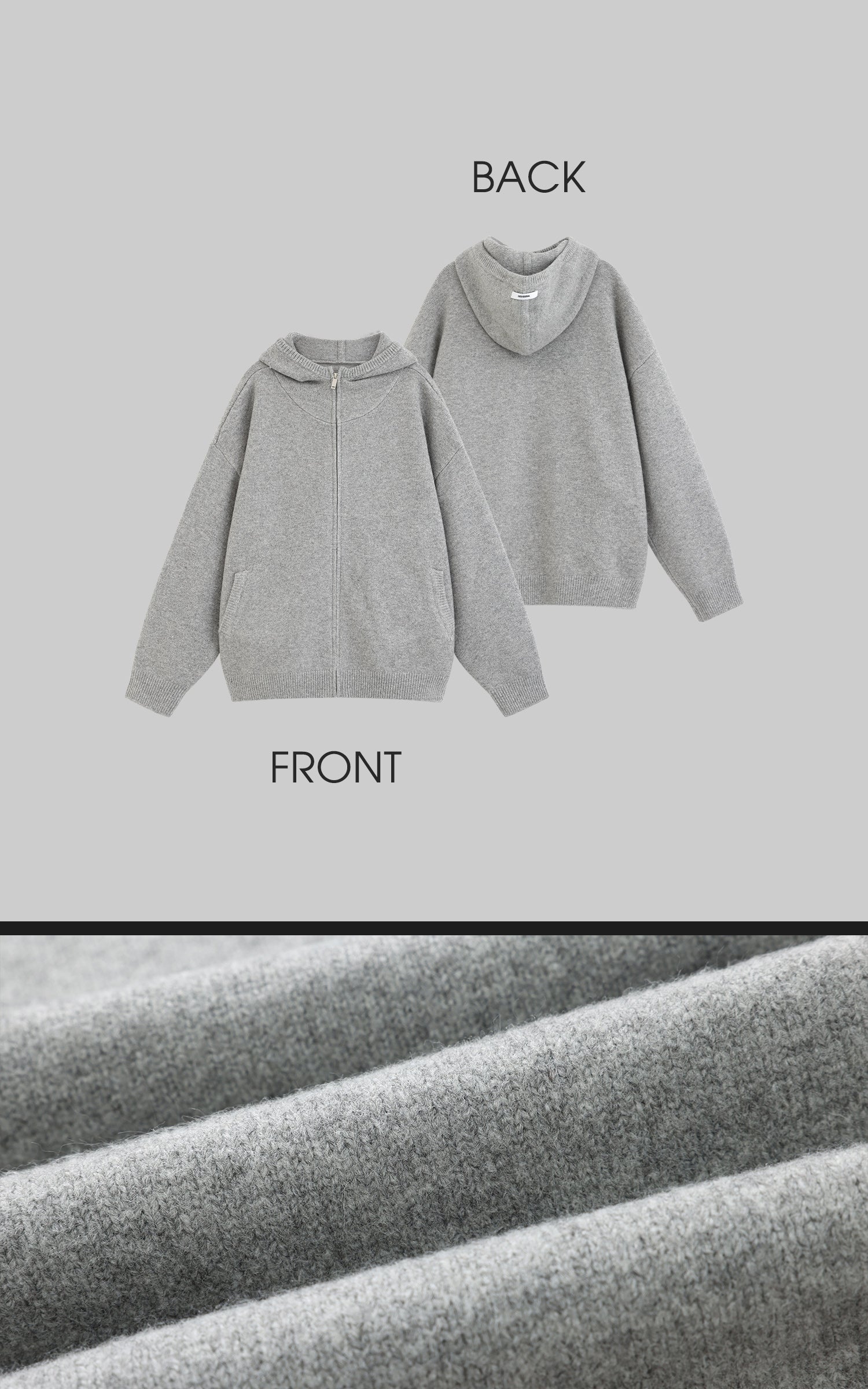The zip-up knit hoodie features a bold. voluminous silhouette that perfectly balances comfort and design.