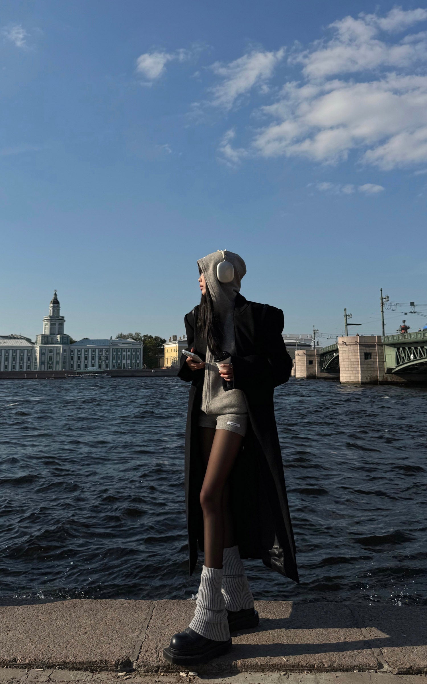 Paired with high-waisted knit shorts. the sleek and streamlined fit highlights the oversized top with effortless contrast.