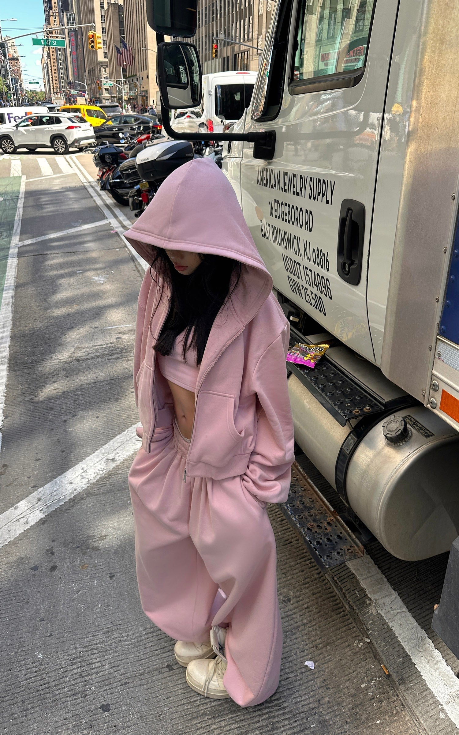 Streetwear ease meets sharp structure. The set includes a zip-up hoodie. a fitted vest. and wide-leg sweatpants—balancing comfort with a statement silhouette. Crafted from soft fleece-touch fabric. it offers warmth and a relaxed oversized fit. Adjustable hems on the pants add versatility. breaking away from the standard loungewear form. Designed for the streets. travel. or casual downtime. it delivers effortless layering and an independent attitude in the city flow.