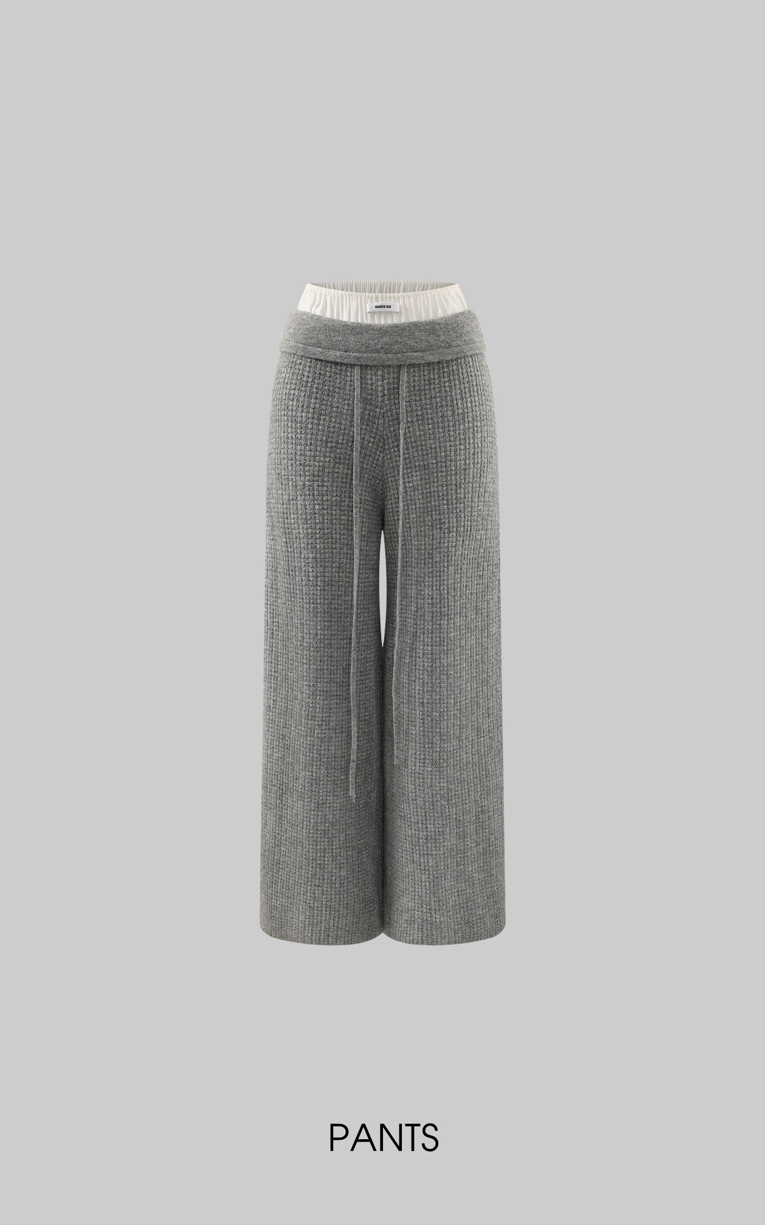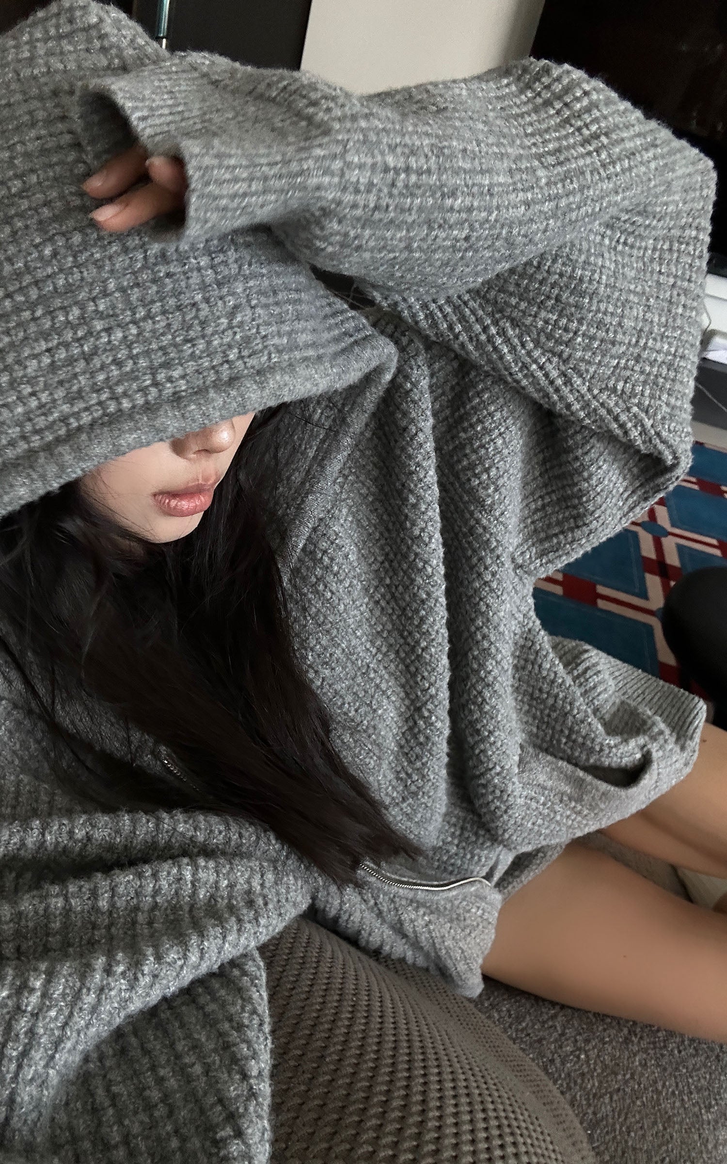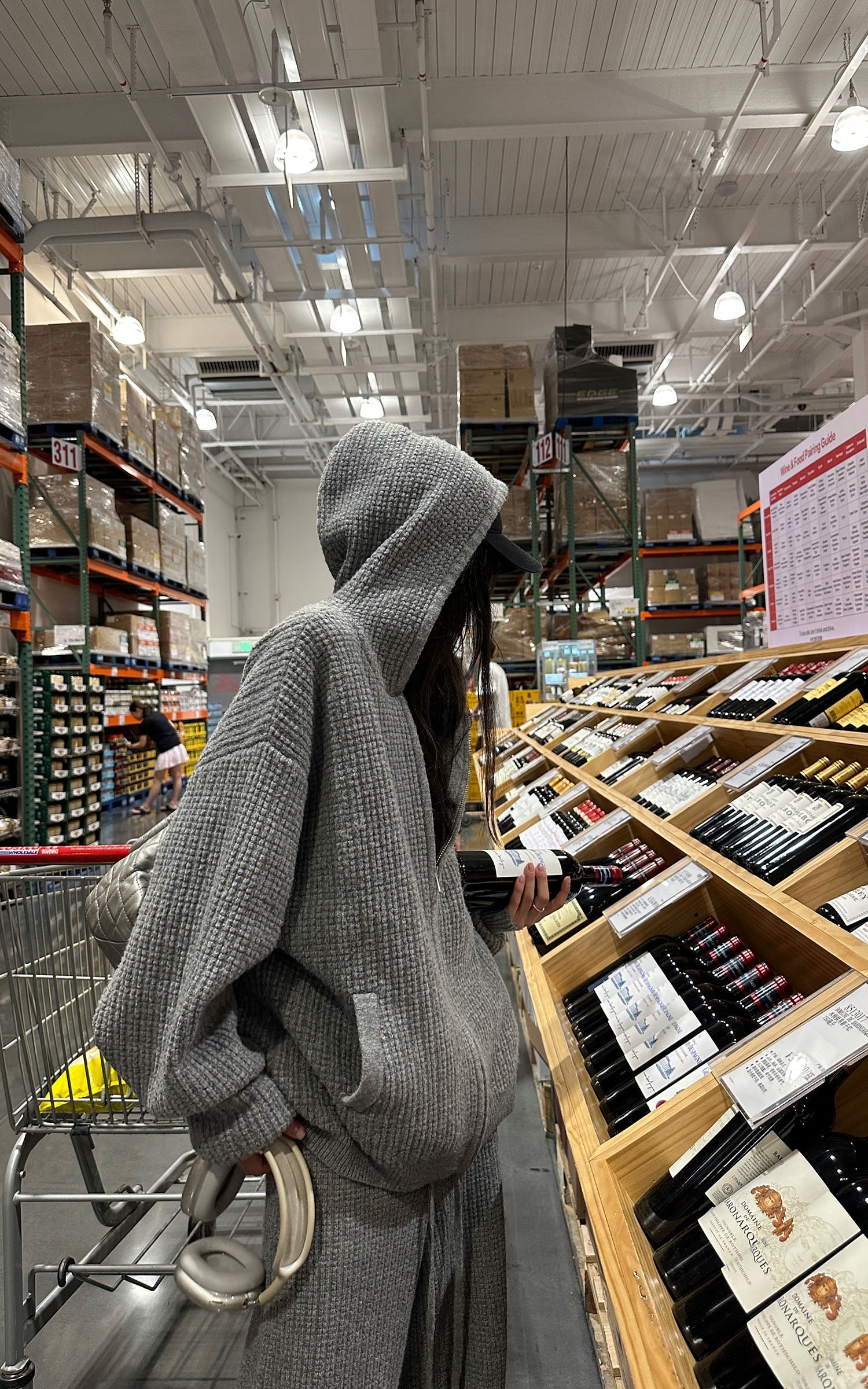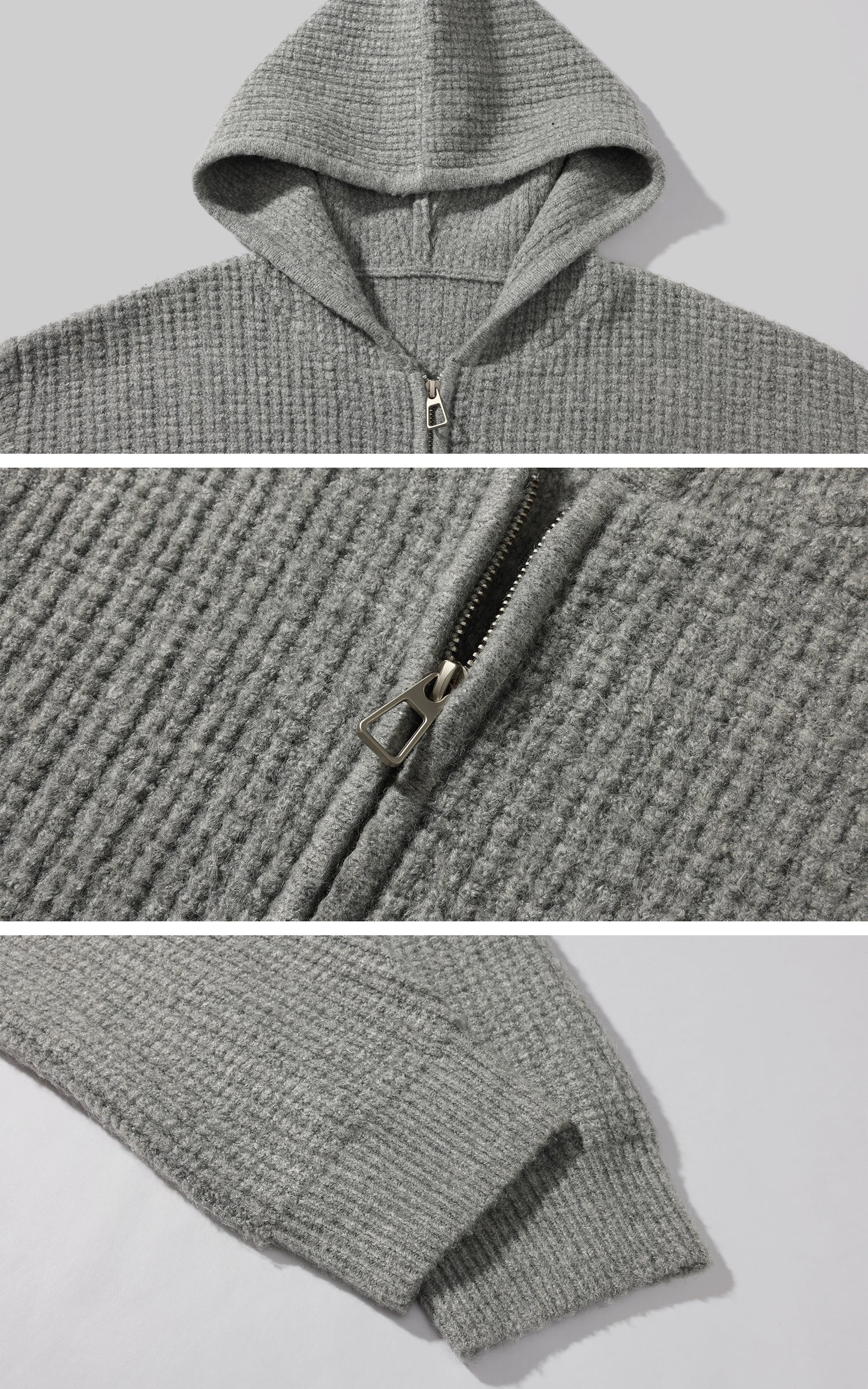 A textured knit set featuring an oversized hooded jacket and wide-leg pants. designed for a relaxed yet structured silhouette. Crafted from thick. soft yarn with a subtle ribbed texture. it blends comfort with a directional edge. Dropped shoulders and voluminous sleeves enhance the laid-back feel. while the adjustable drawstring waist adds ease of wear. Effortlessly transitions between indoor ease and urban minimalism.