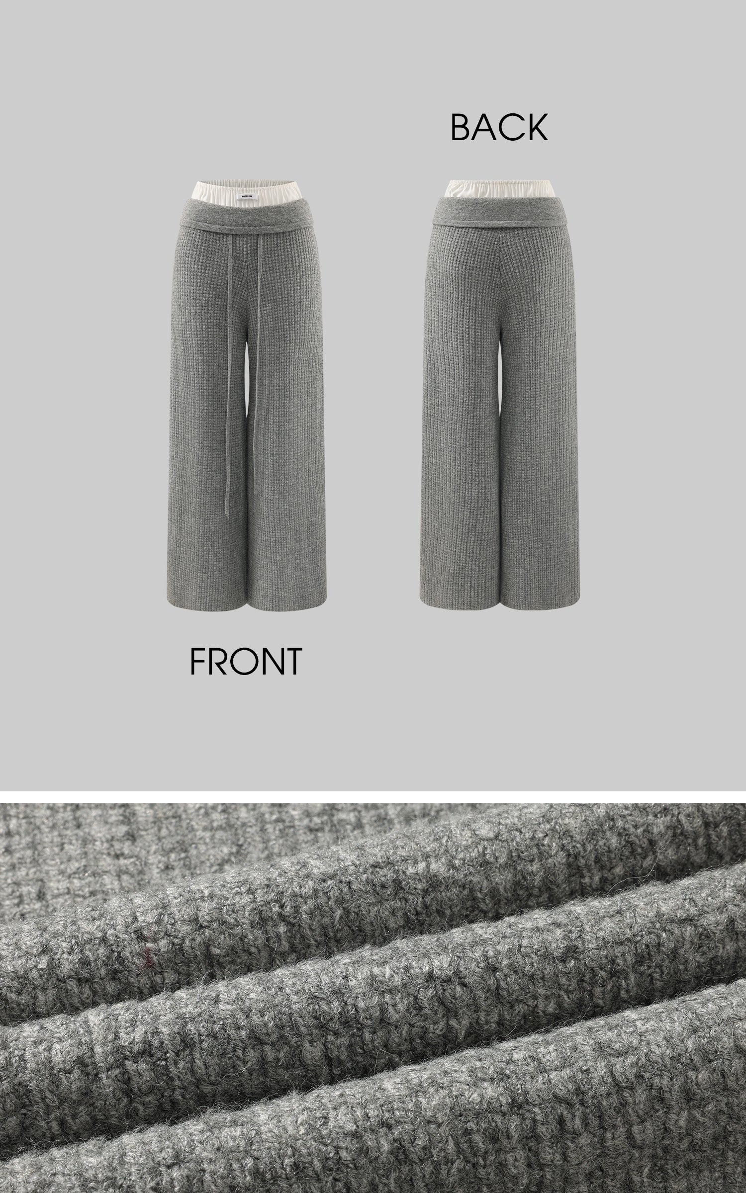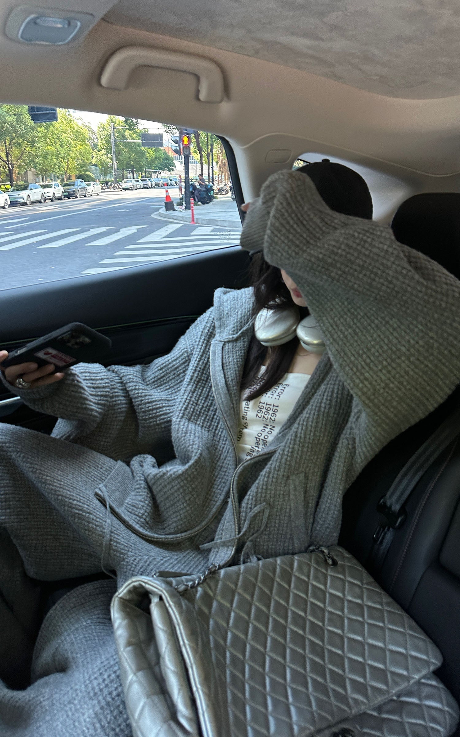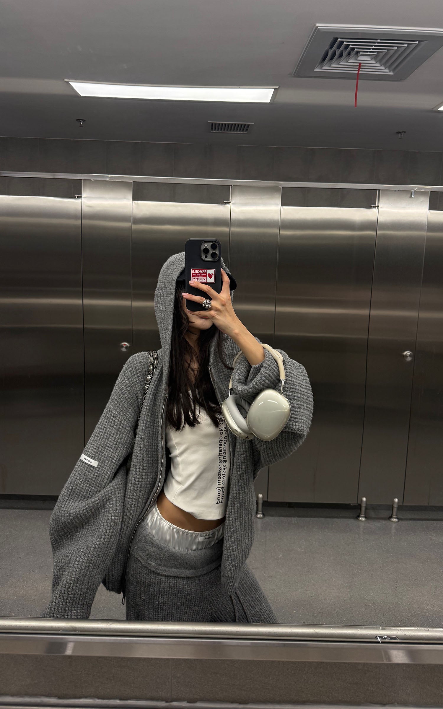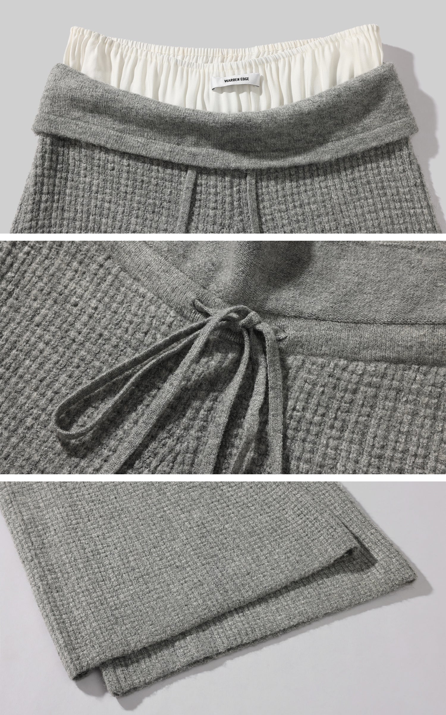 A textured knit set featuring an oversized hooded jacket and wide-leg pants. designed for a relaxed yet structured silhouette. Crafted from thick. soft yarn with a subtle ribbed texture. it blends comfort with a directional edge. Dropped shoulders and voluminous sleeves enhance the laid-back feel. while the adjustable drawstring waist adds ease of wear. Effortlessly transitions between indoor ease and urban minimalism.