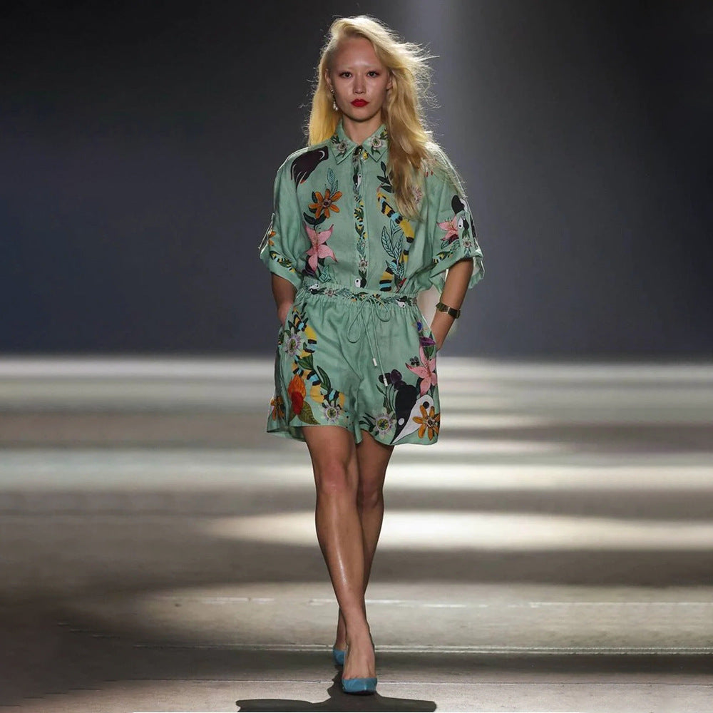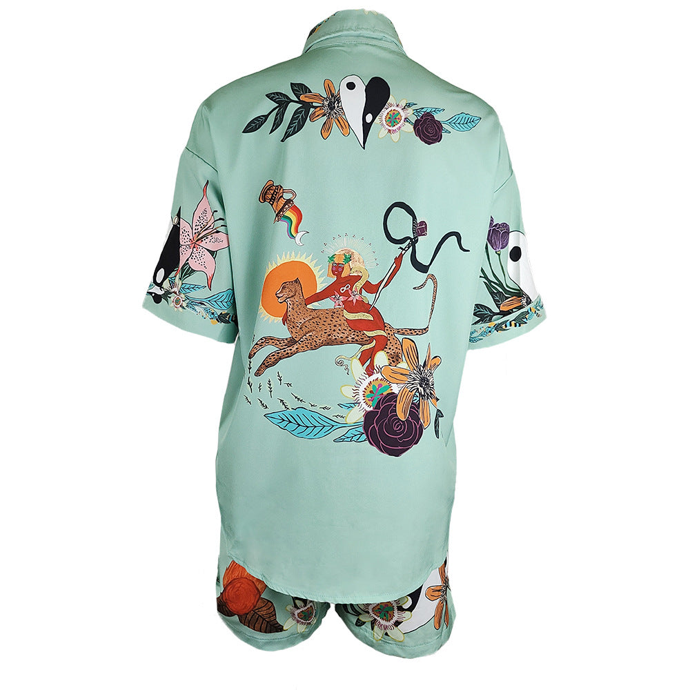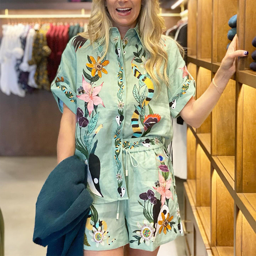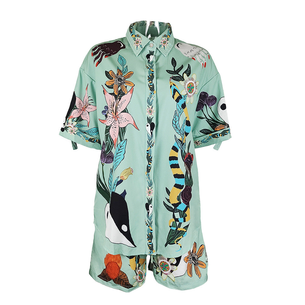 Material: The 2-piece printed fashionable short sleeved shorts set is made of high-quality blended and spandex fabric, which is skin friendly, soft, elastic, and comfortable to wear.
