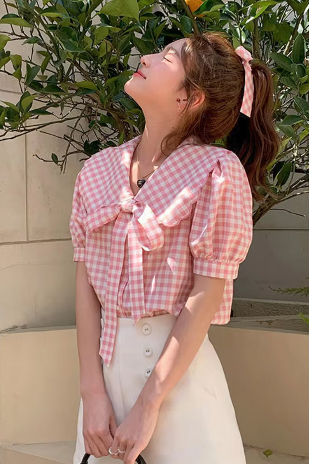 Buy Puff Sleeve Pink Plaid Bow Shirt from Omcne for your outfit of the day. This item is in stock and ready to order. World Wide Shipping Service. Check our Shop for more trendy fashion.