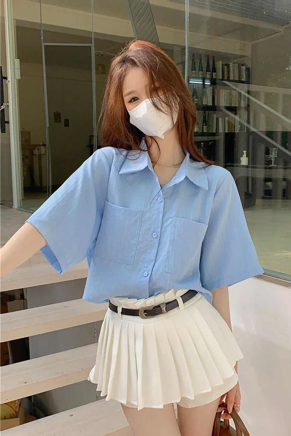 Buy Short Sleeve Basic Colors Cropped Blouse Shirts from Omcne for your outfit of the day. This item is in stock and ready to order. World Wide Shipping Service. Check our Shop for more trendy fashion.