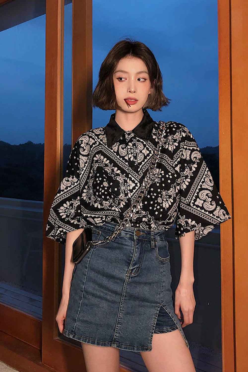 Vintage Black Art Pattern Loose Blouse Shirt
