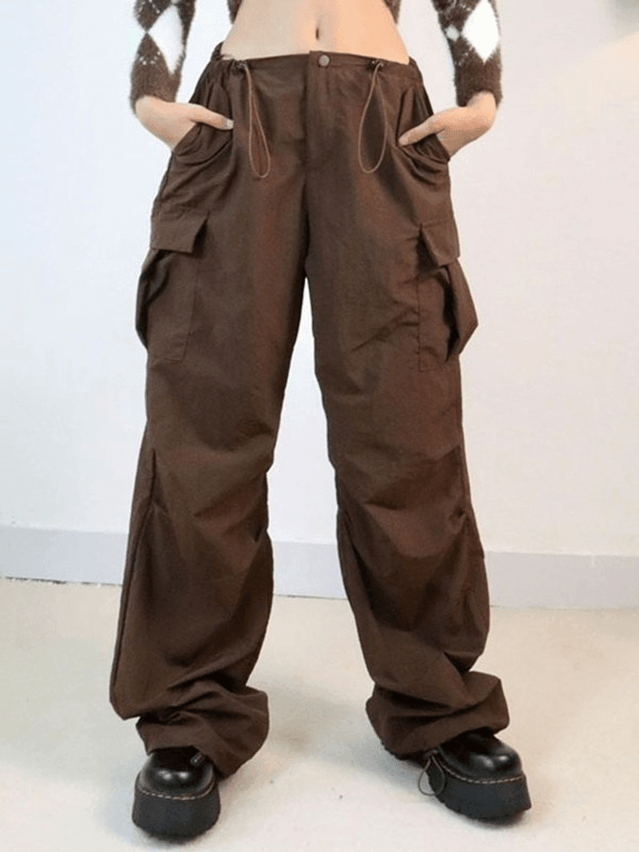Description: Step up your fashion game with these vintage-inspired parachute cargo pants. Perfect for festival seasons. these pants offer a relaxed fit and feature a drawstring detail at the waist and cuffs. Complete with functional pockets and a button zip fastening. they're a must-have addition to your wardrobe.