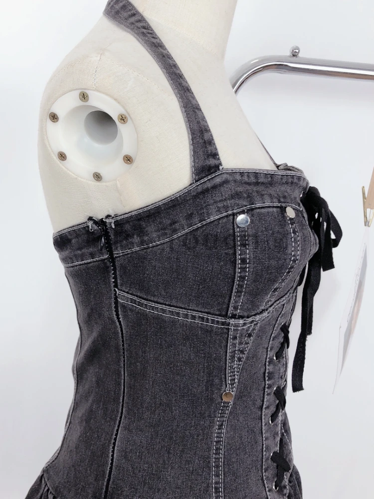 Aesthetic Vintage Loose Slash Neck Dress Women Summer Elegant Slim Sleeveless Dresses Female Sexy Y2k Lace Up Clothes Streetwear